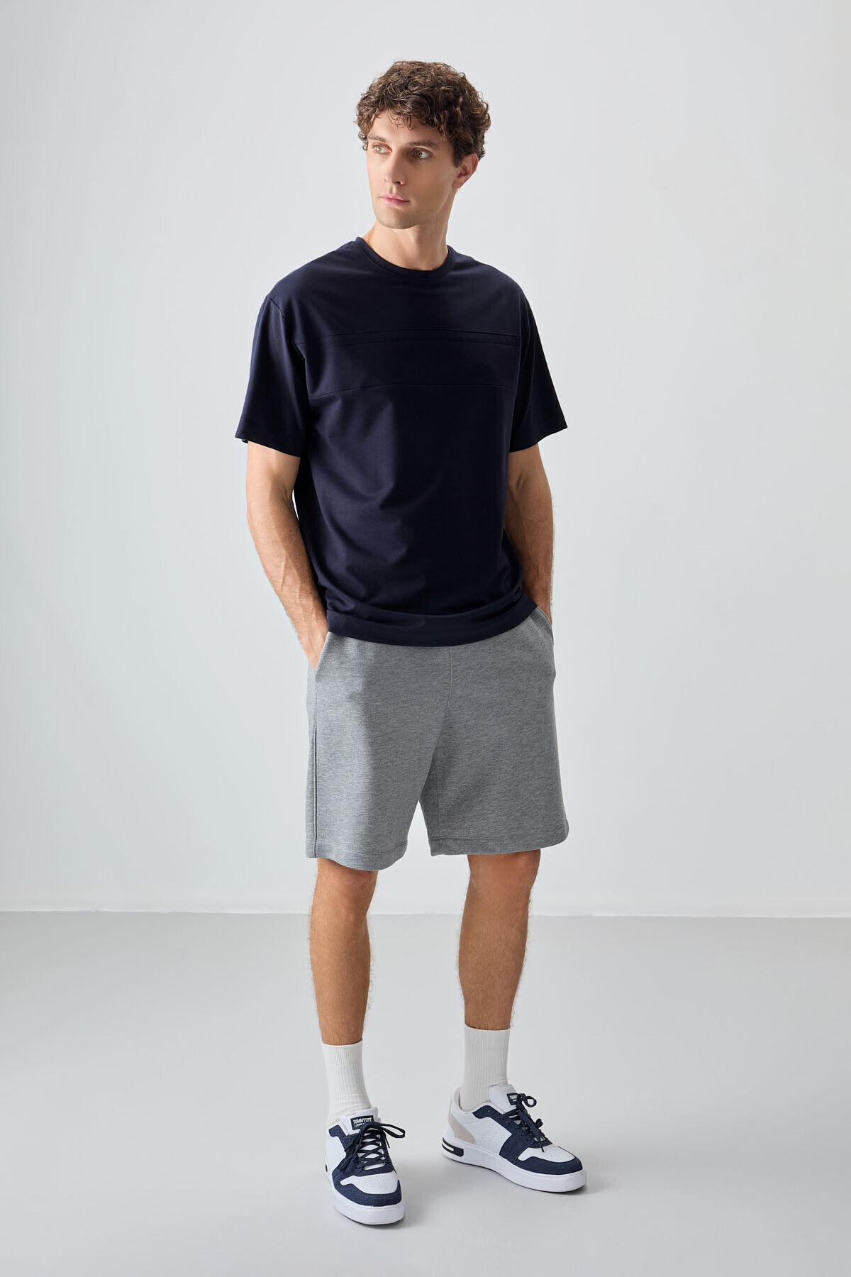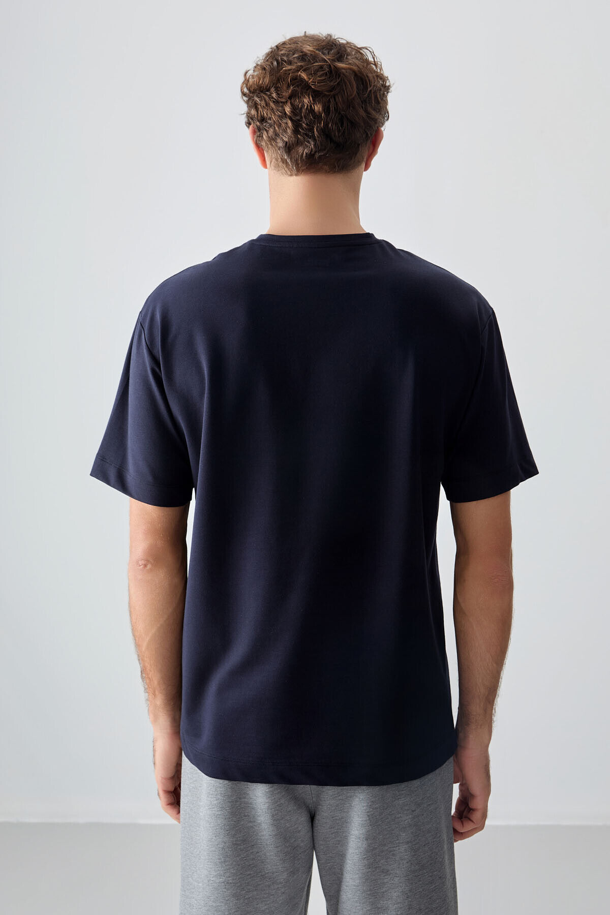 Air Jones Lacivert Pamuklu Kalın Yumuşak Dokulu Oversize Fit Basic Erkek T-Shirt - 88378