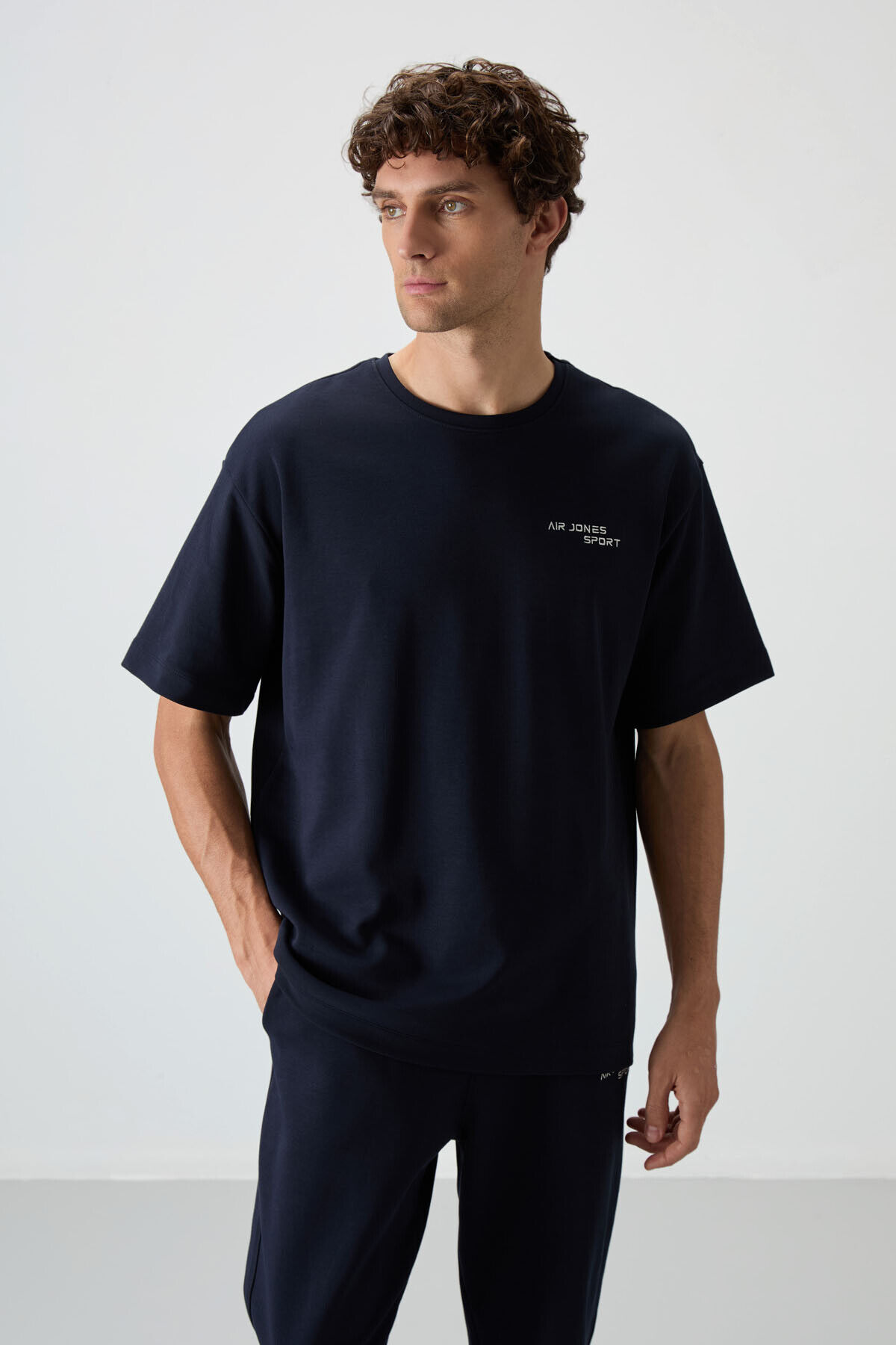 Lacivert Pamuklu Kalın Yumuşak Dokulu Oversize Fit Nakışlı Erkek Eşofman Takım - 85252