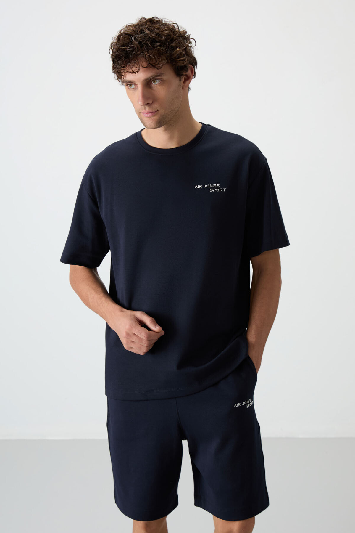 Air Jones Lacivert Pamuklu Kalın Yumuşak Dokulu Oversize Fit Nakışlı Erkek Şort Takım - 85250