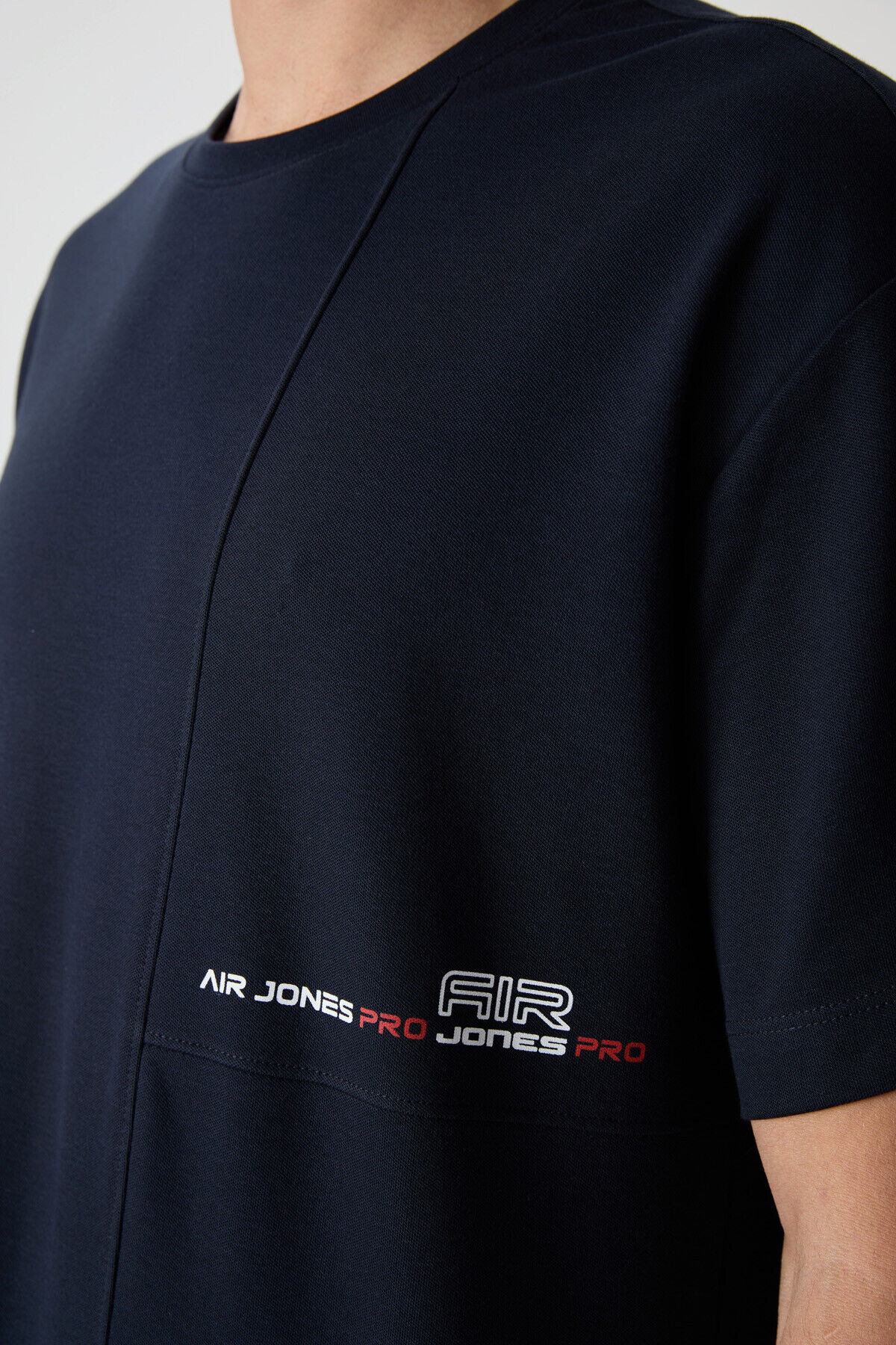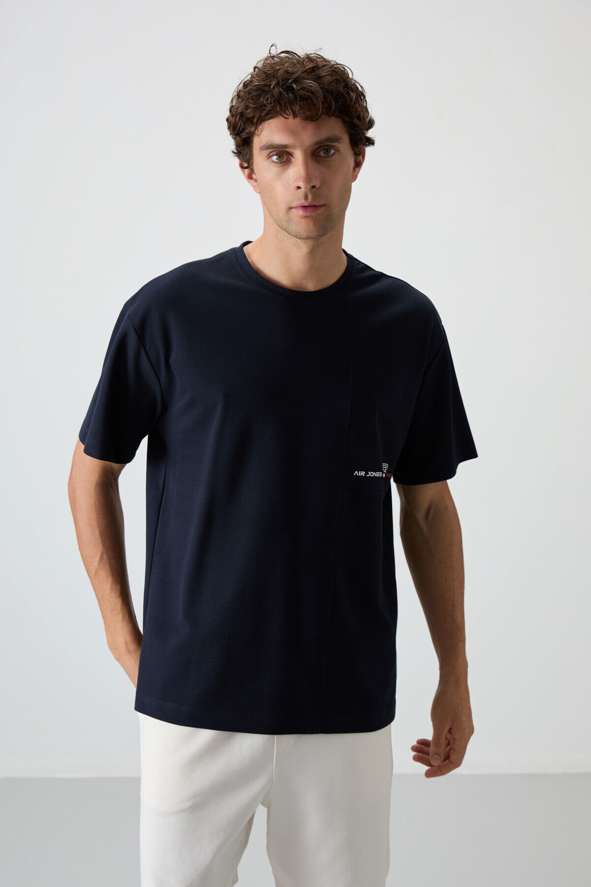 Air Jones Lacivert Pamuklu Kalın Yüzeyi Dokulu Oversize Fit Baskılı Erkek T-Shirt - 88370