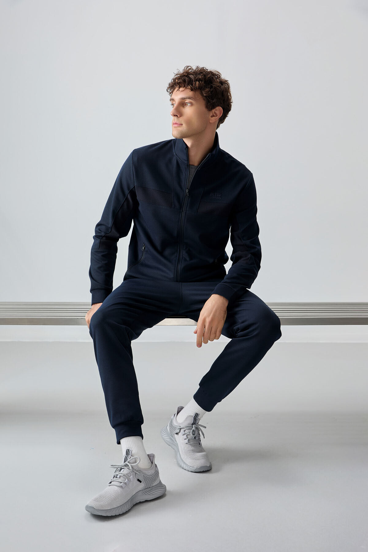 Lacivert Yüzeyi Dokulu Standart Fit Nakışlı Erkek Eşofman Takım - 85248