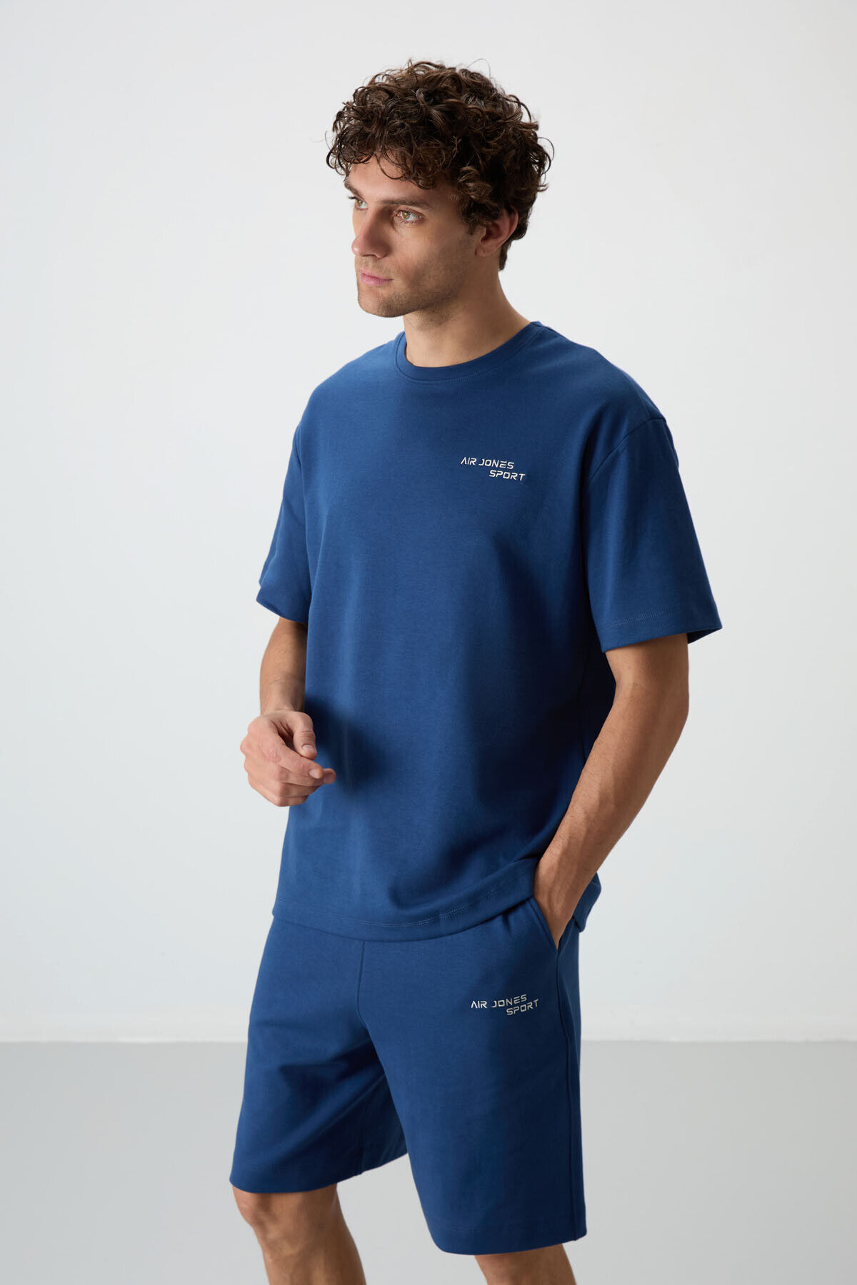 Air Jones Parlament Pamuklu Kalın Yumuşak Dokulu Oversize Fit Nakışlı Erkek Şort Takım - 85250