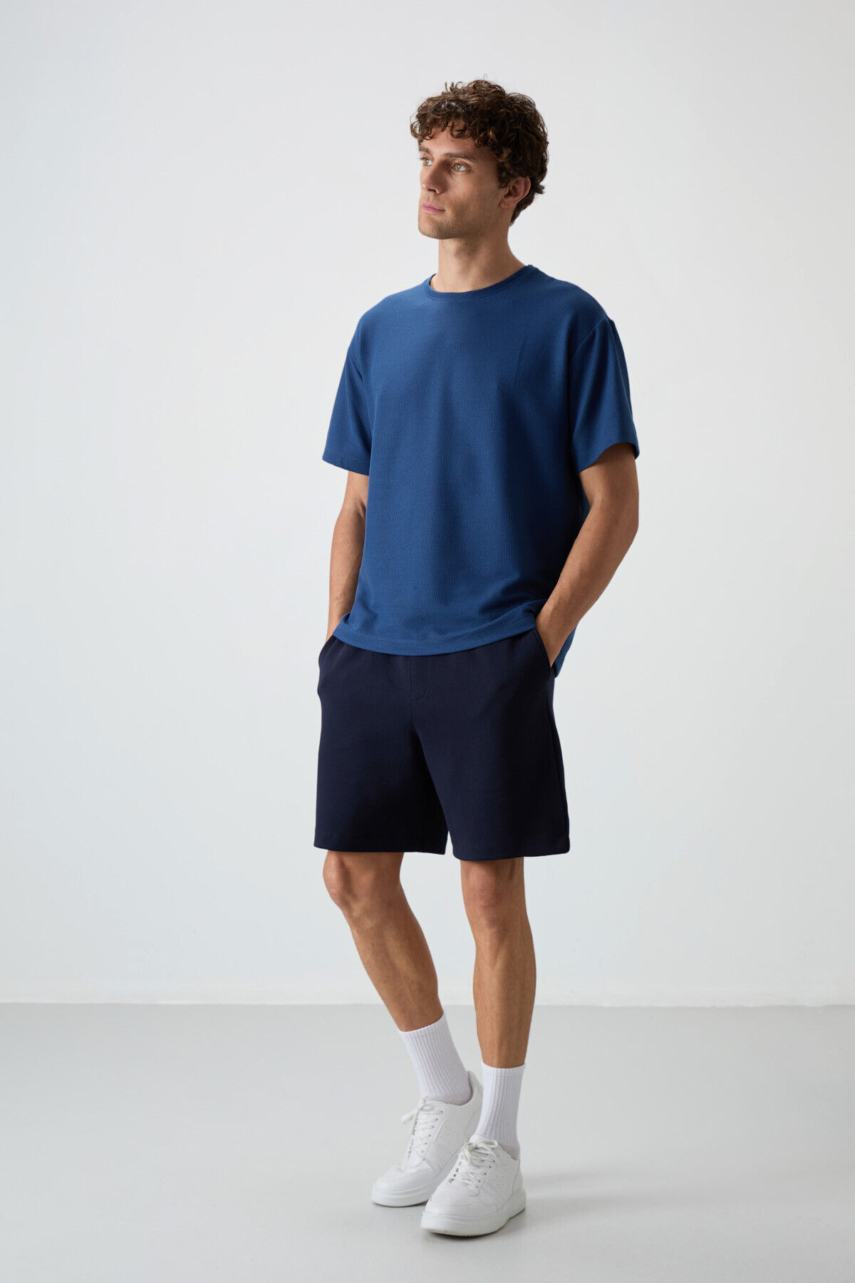 Parlament Waffle İnterlok Yüzeyi Dokulu Oversize Fit Basic Erkek T-Shirt - 88379