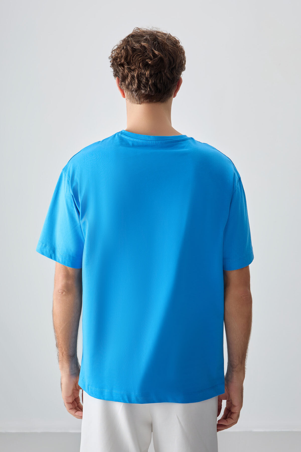 Air Jones Petrol Mavi %100 Pamuk Kalın Yumuşak Dokulu Oversize Fit Baskılı Erkek T-Shirt - 88357