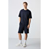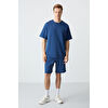 Petrol Pamuklu Kalın Yumuşak Dokulu Oversize Fit Basic Erkek Şort Takım - 85257