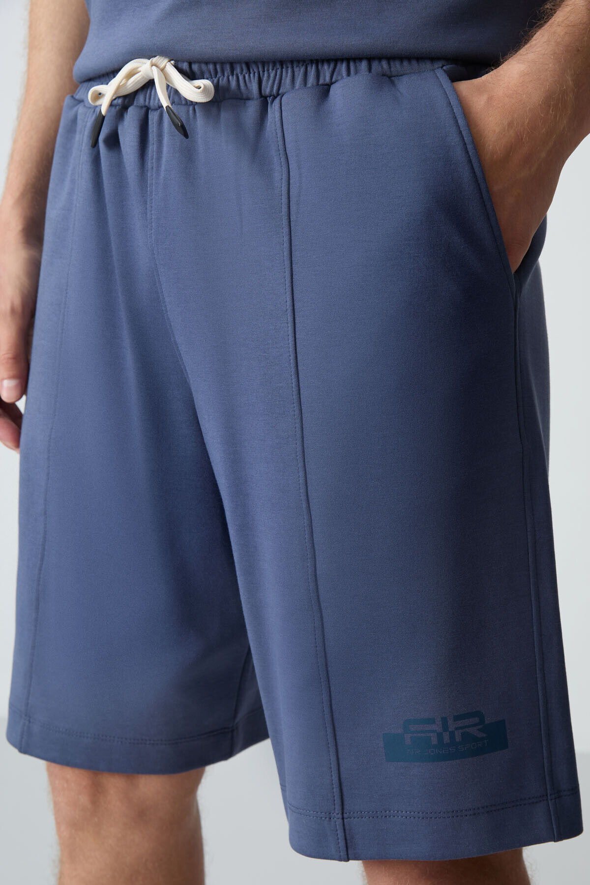 Petrol Pamuklu Kalın Yumuşak Dokulu Oversize Fit Basic Erkek Şort Takım - 85259