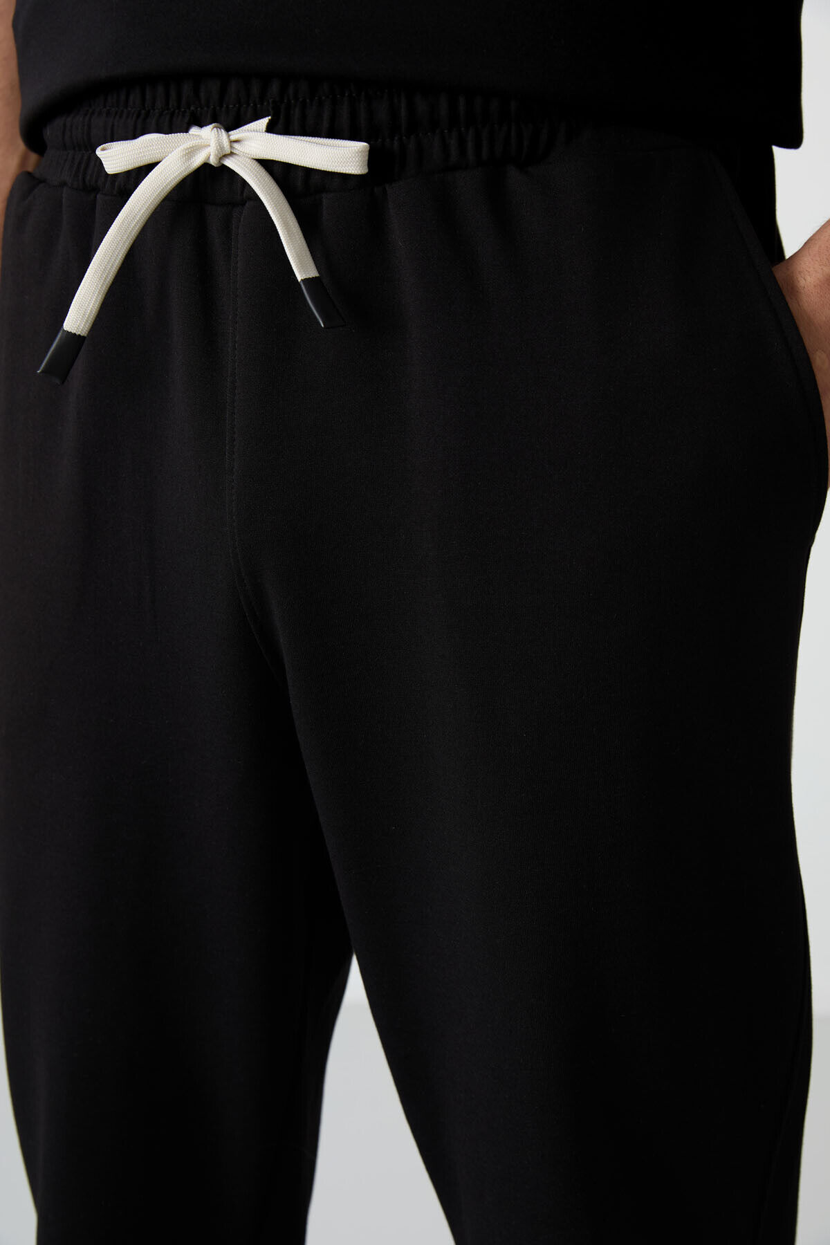 Air Jones Siyah Pamuklu Kalın Yumuşak Dokulu Oversize Fit Basic Erkek Eşofman Takım - 85251
