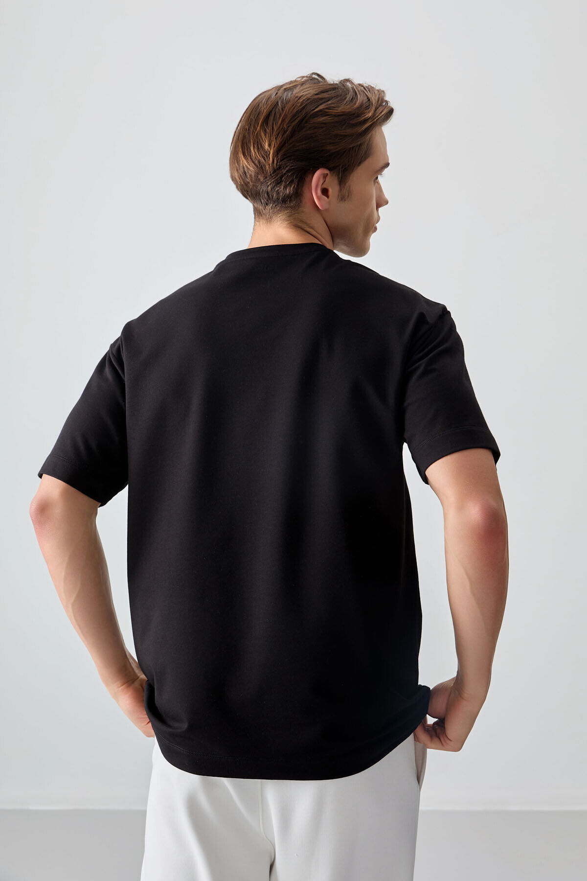 Air Jones Siyah Pamuklu Kalın Yumuşak Dokulu Oversize Fit Basic Erkek T-Shirt - 88378