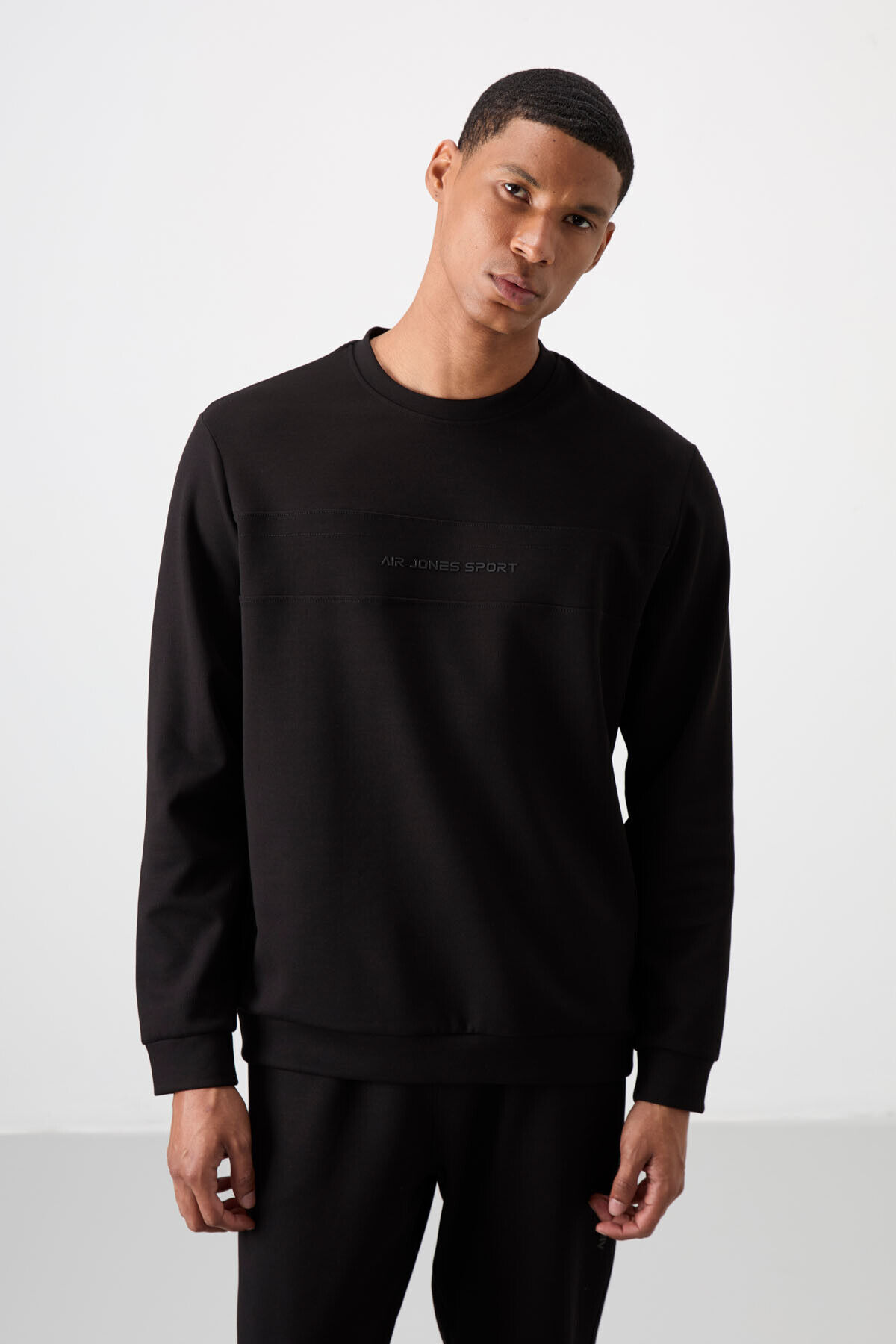 Air Jones Siyah - Siyah Pamuklu Kalın Yumuşak Dokulu Comfort Fit Baskılı Erkek Eşofman Takım - 85253