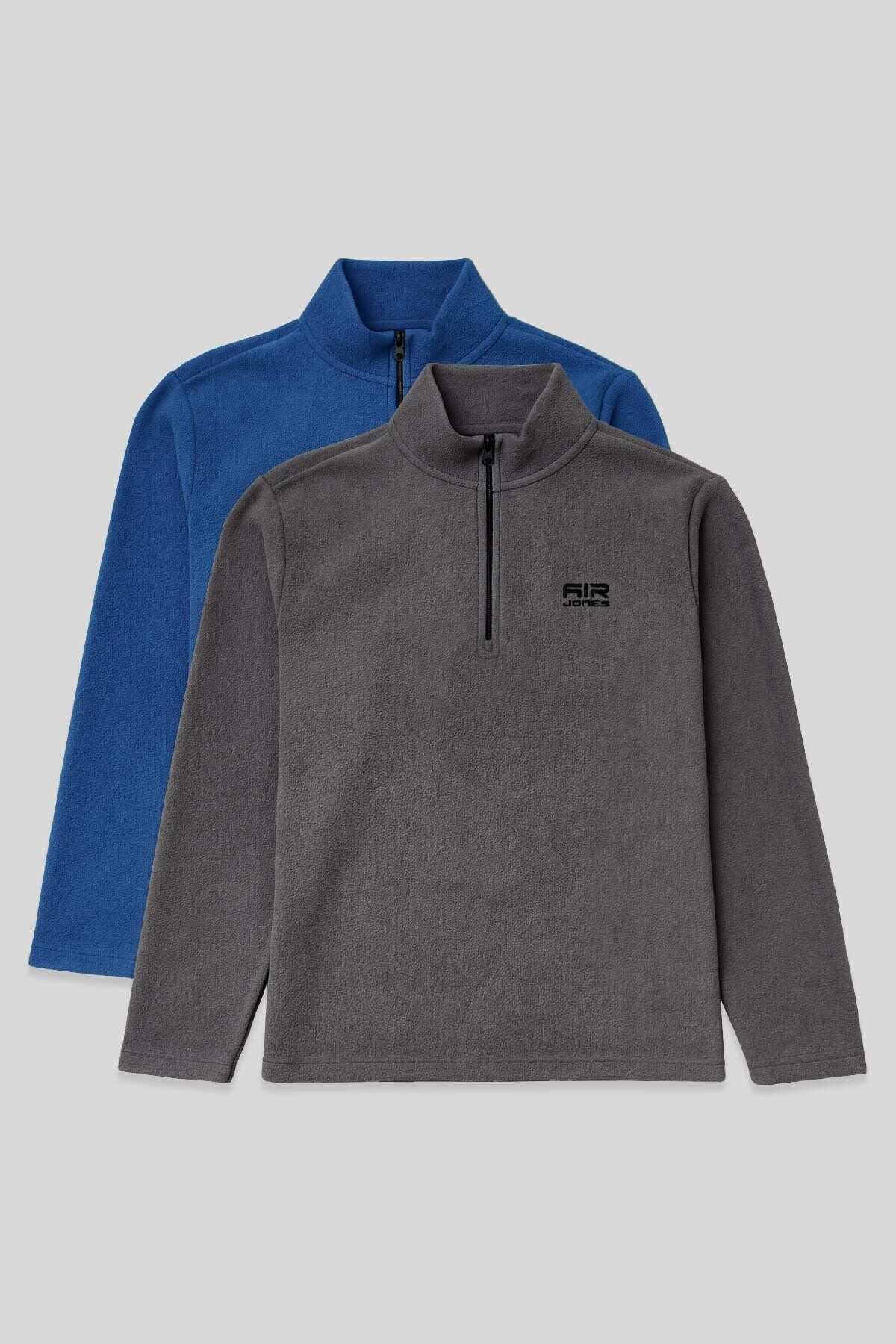 Standart Kalıp Dik Yaka 2li Paket Koyu Gri-Parlament Erkek Polar Sweatshirt - 88310