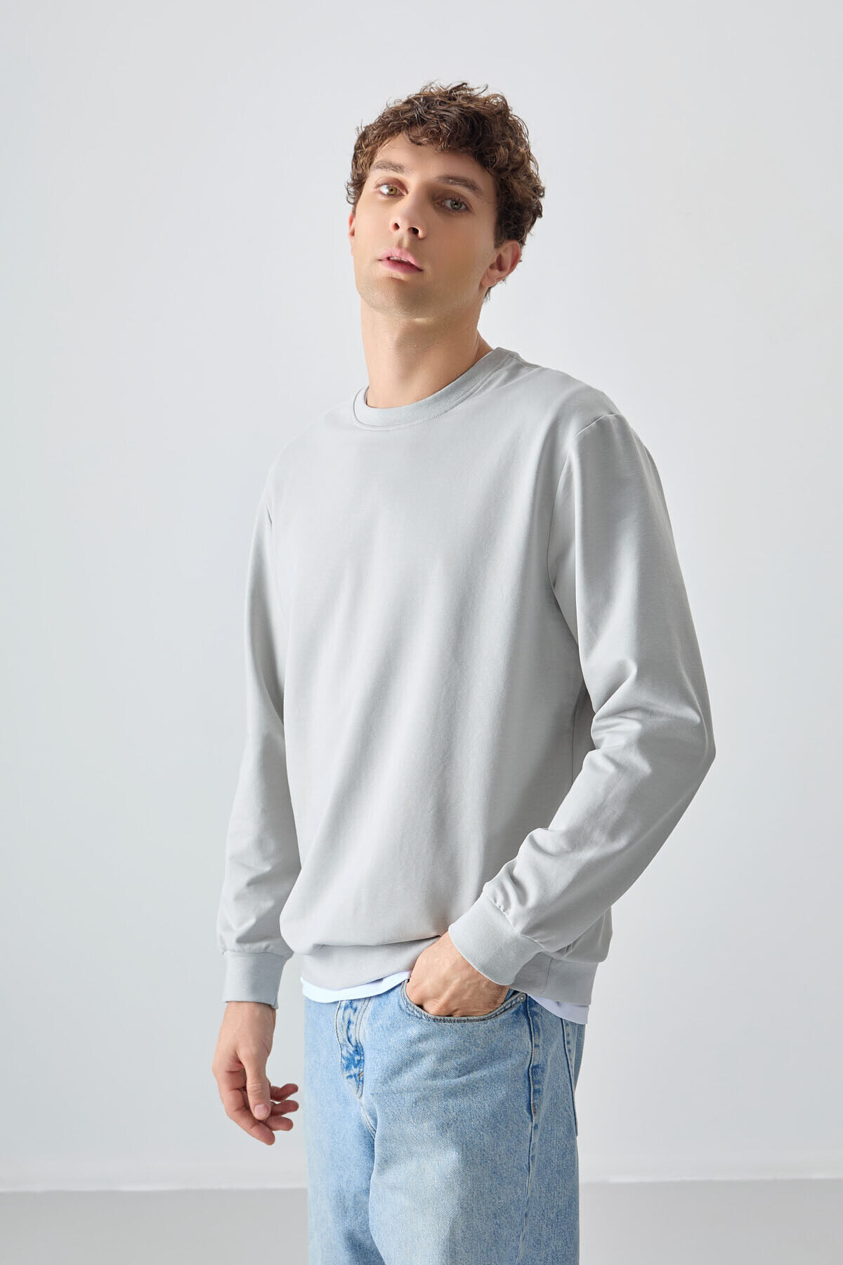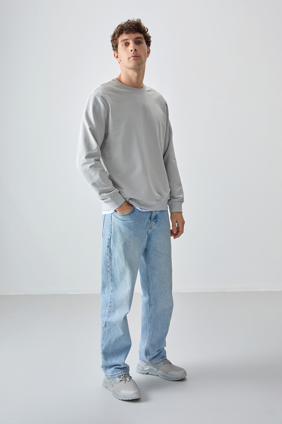 Air Jones Taş Pamuk Yumuşak Dokulu Standart Fit Basic Erkek Sweatshirt - 88363