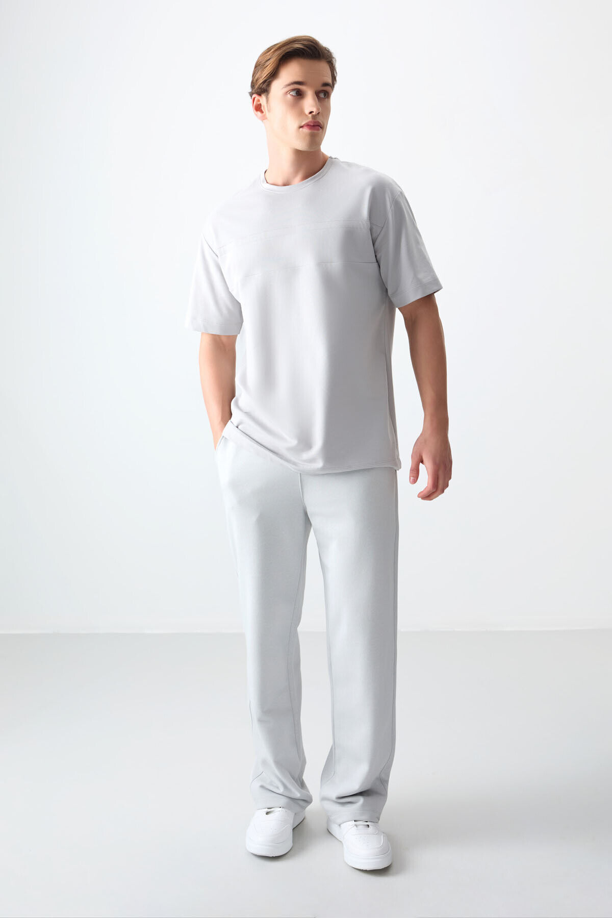 Air Jones Taş Pamuklu Kalın Yumuşak Dokulu Oversize Fit Basic Erkek T-Shirt - 88378