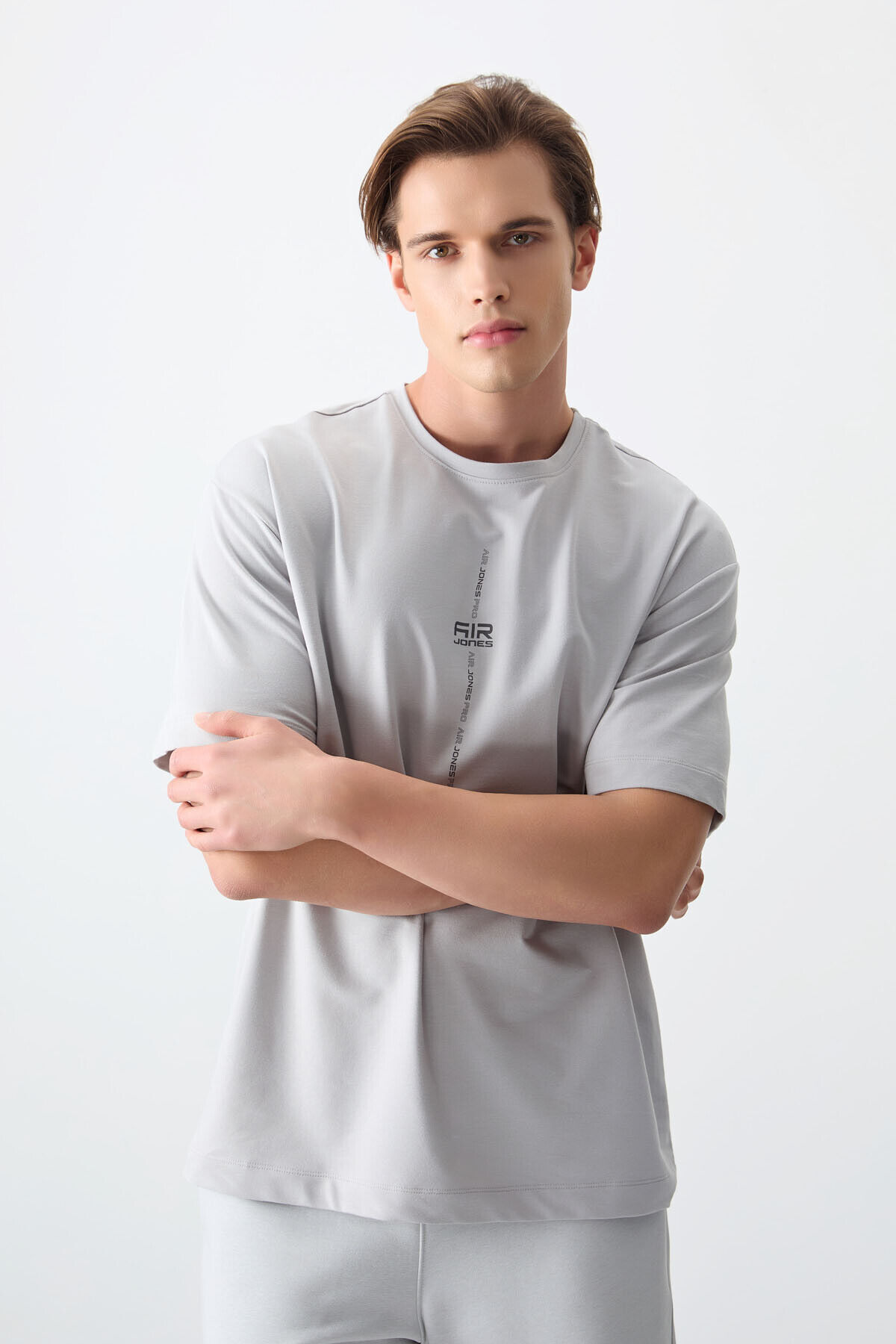Air Jones Taş Pamuklu Kalın Yumuşak Dokulu Oversize Fit Baskılı Erkek T-Shirt - 88373