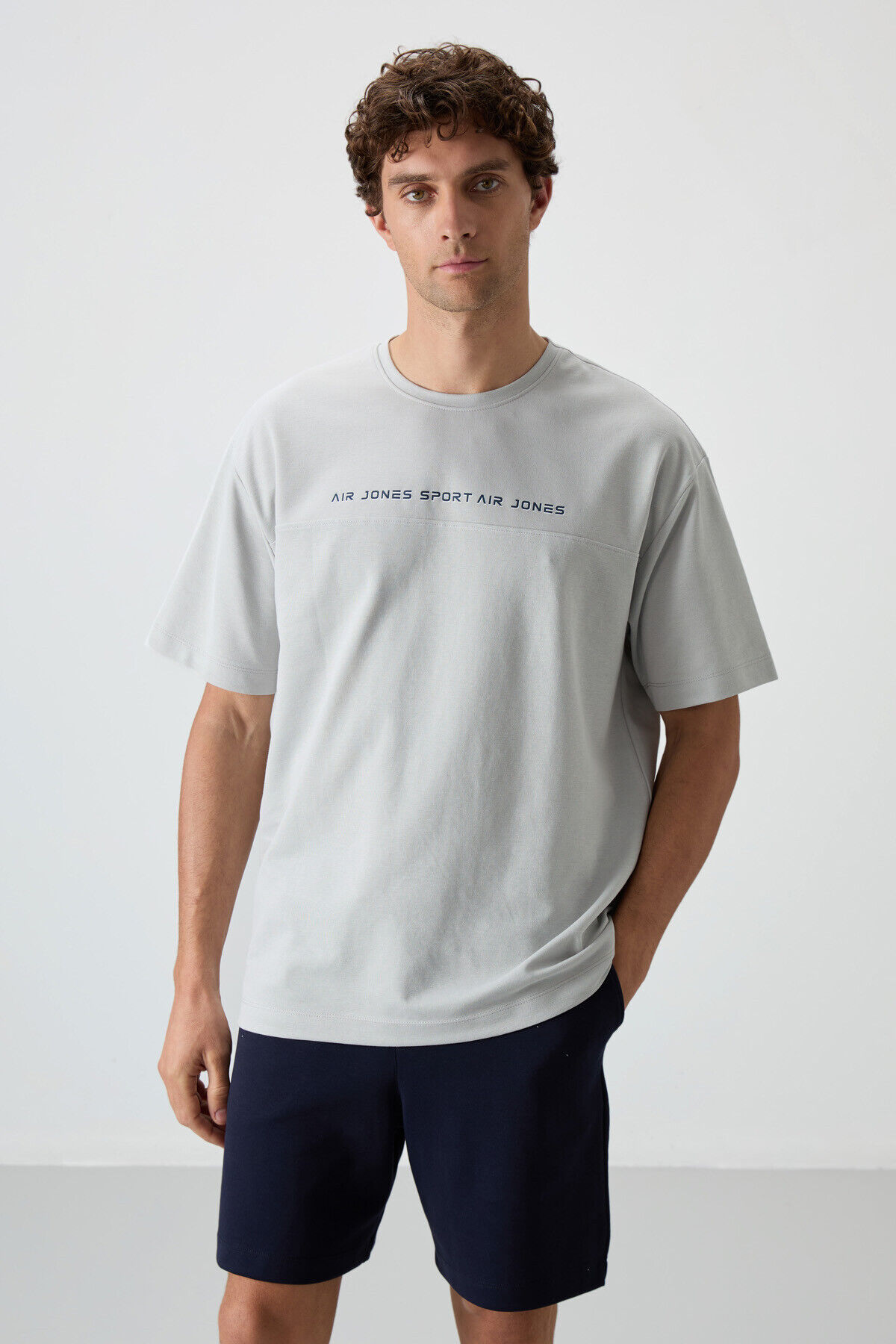 Taş Pamuklu Kalın Yüzeyi Dokulu Oversize Fit Baskılı Erkek T-Shirt - 88371