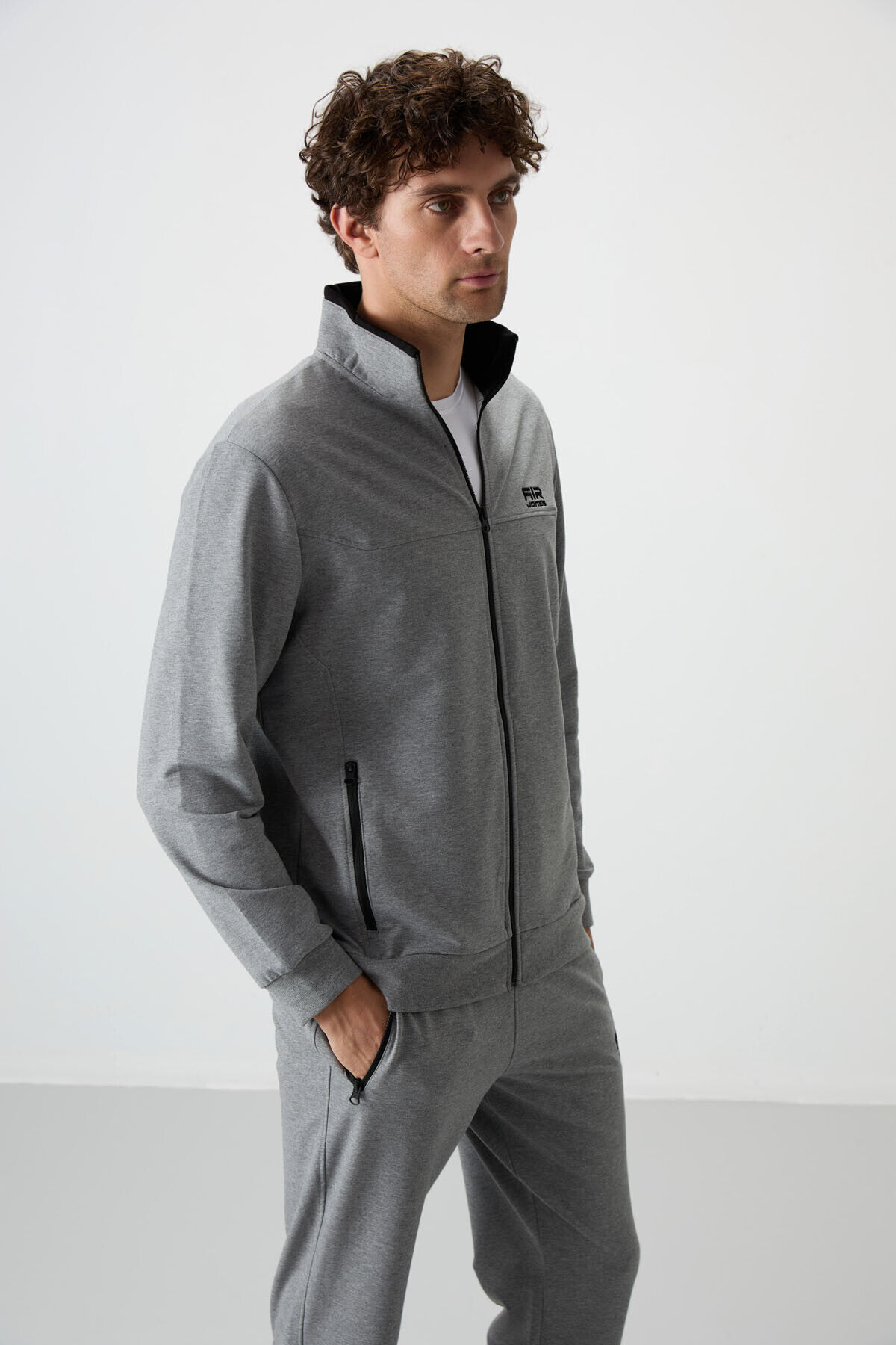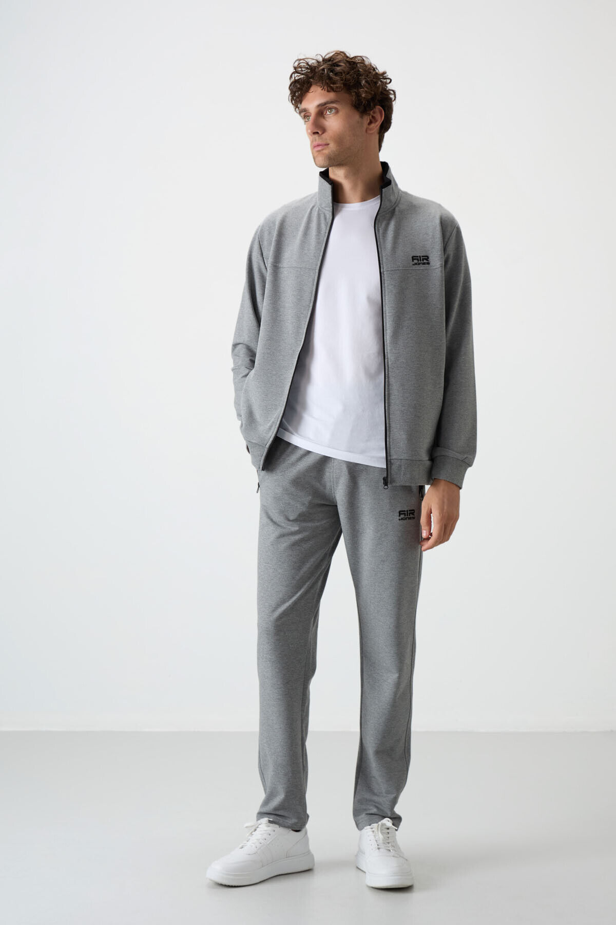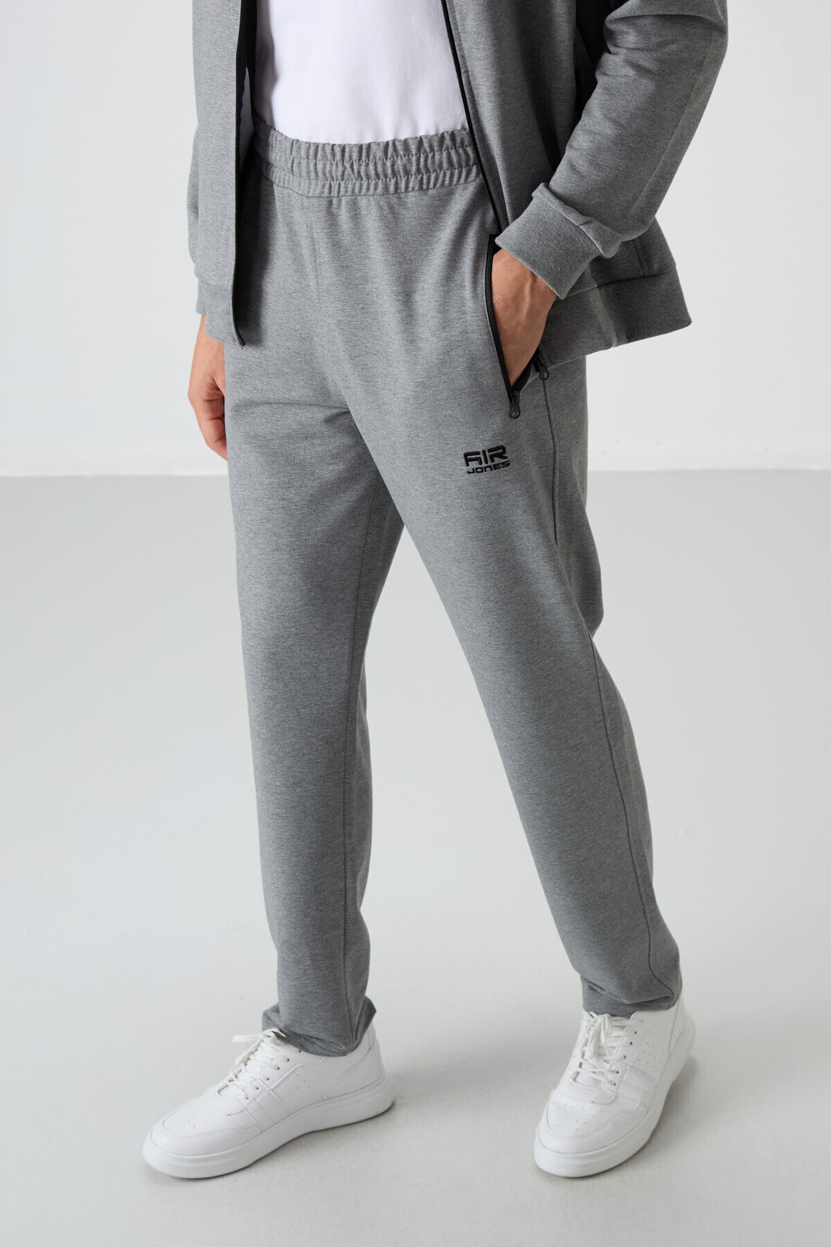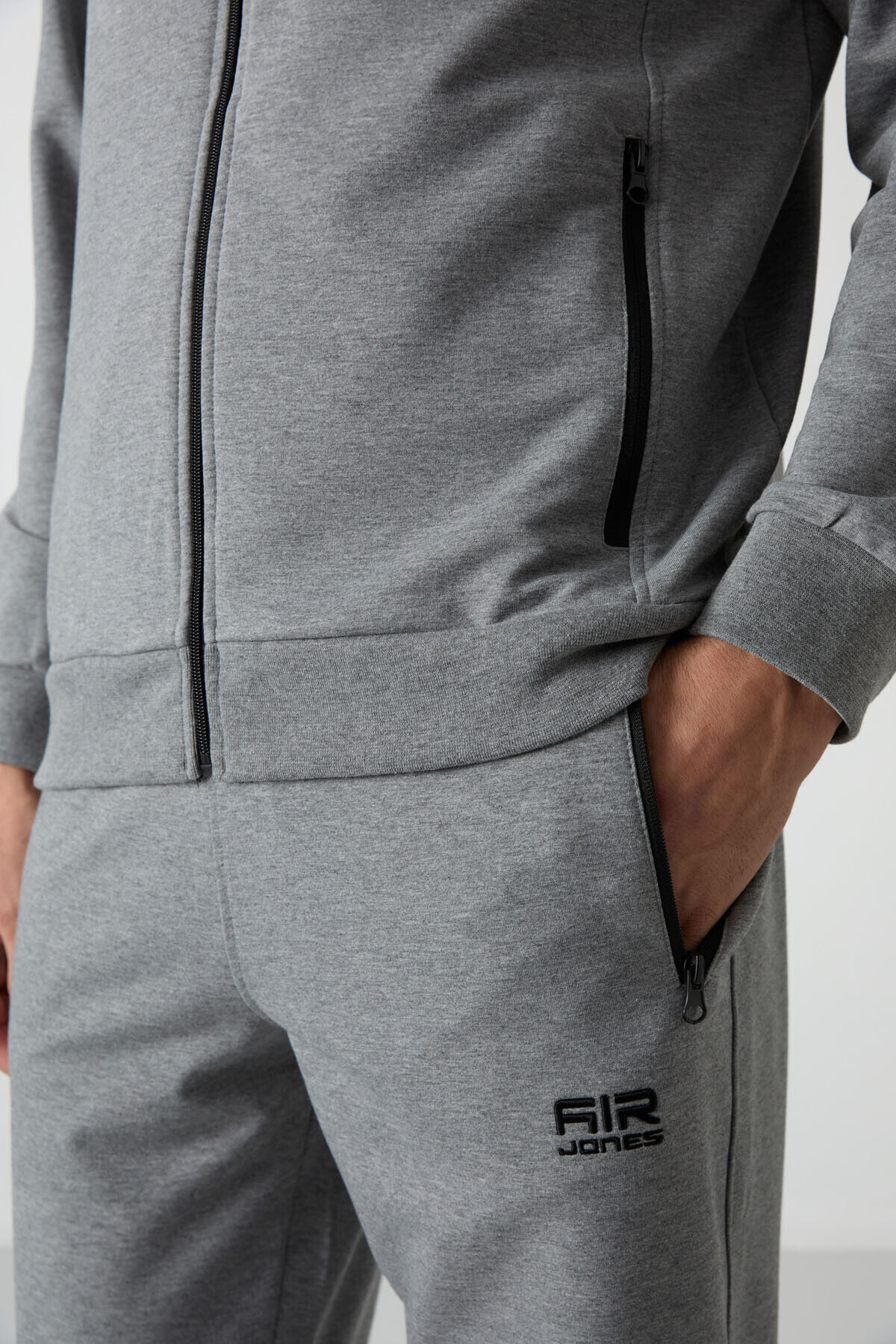 Air Jones Troy Gri Melanj Standart Kalıp Erkek Eşofman Takım - 85196