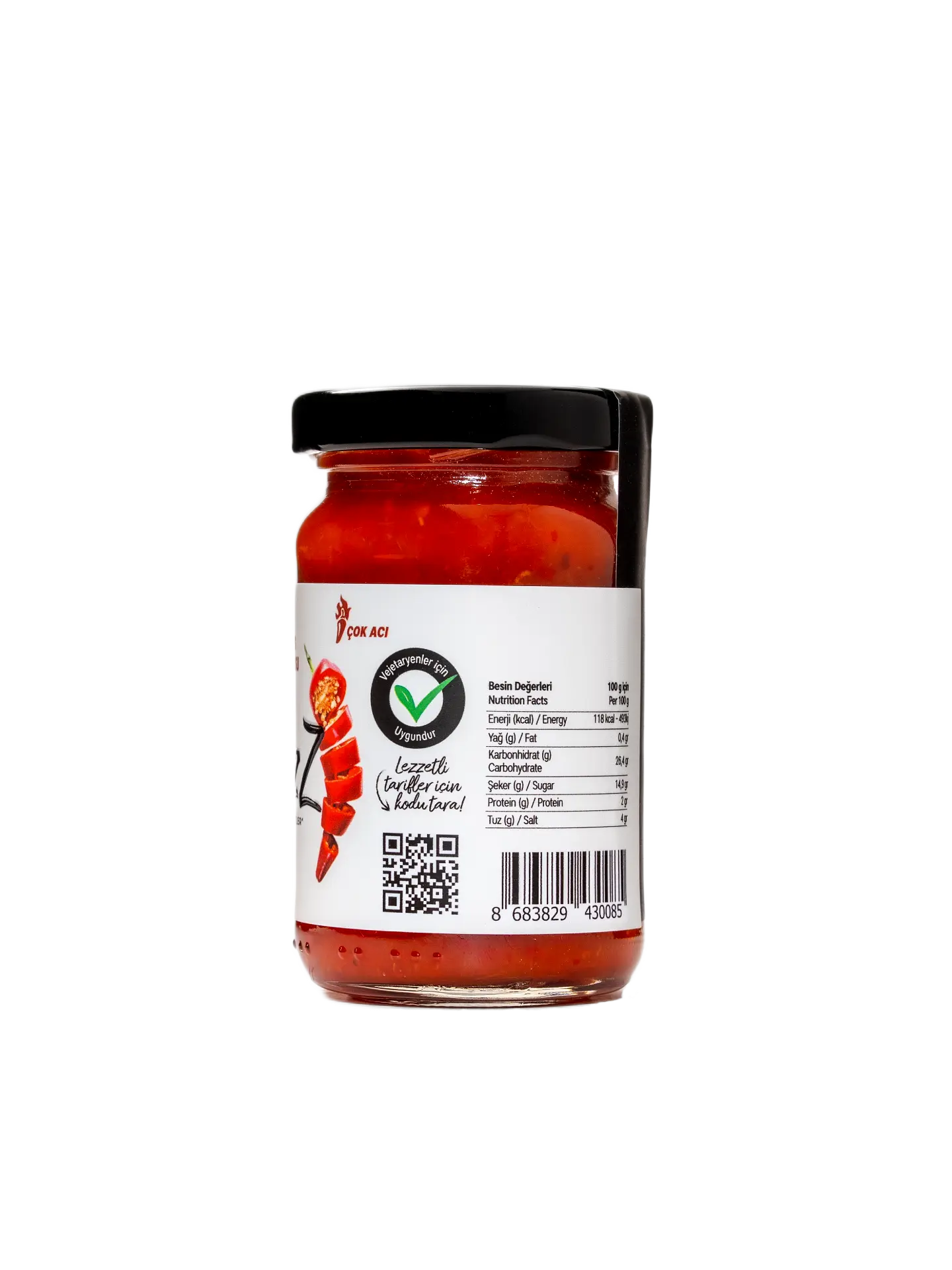 İÇİNDEKİLER:  Közlenmiş kapya biber, güneşte kurutulmuş chilli biberi, sarımsak, bal, domates salçası, tuz, sirke.