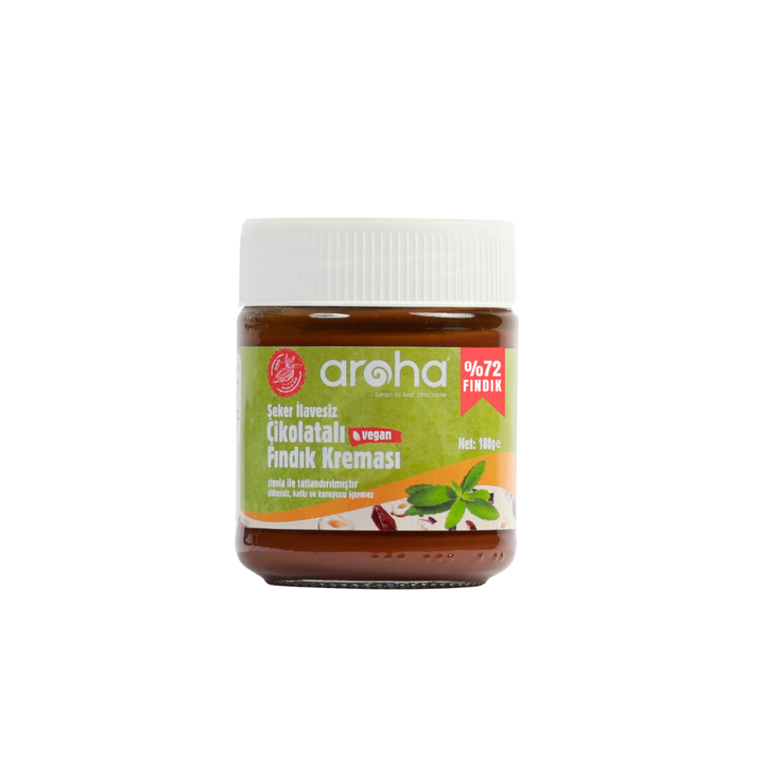 Aroha Stevialı Şekersiz Çikolatalı Fındık Kreması 180g, şeker eklenmeden doğal tatlandırıcı stevia kullanılarak üretilmiştir. Fındığın zengin aroması ile yoğun çikolatanın mükemmel uyumunu sunan bu krema, sağlıklı yaşamı tercih edenler için ideal bir alternatiftir. Yüksek fındık ve şekersiz oluşu ile beslenme dezavantajı olan tüketiciler için ve şekersiz beslenenler için üretildi. %72 fındık içeren Aroha Stevialı Fındık Kreması; stevialı tatlandırıcı içeren kendine has tadı ile, protein ve lif oranı yüksek, besleyici, şekersiz bir üründür. Prebiyotik lif oranı çok yüksek bir fındık ezmesidir. 180 gramlık pratik ambalajı ile her an kolayca tüketilebilen bu ürün, eklenmiş şeker içermemesi sayesinde tatlı ihtiyacını şeker alımını sınırlamak isteyenler için karşılar. Hem kahvaltılarda hem de ara öğünlerde keyifle kullanılabilir.