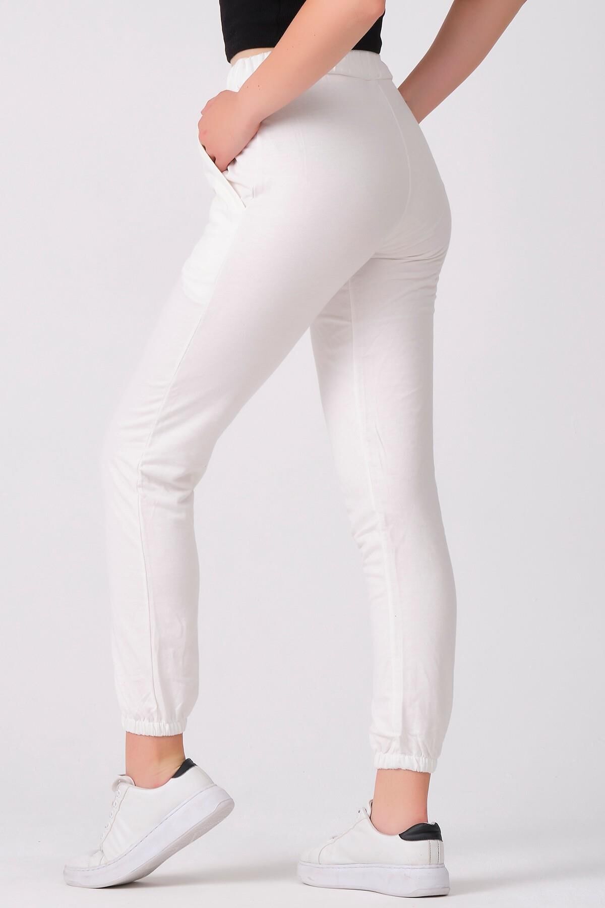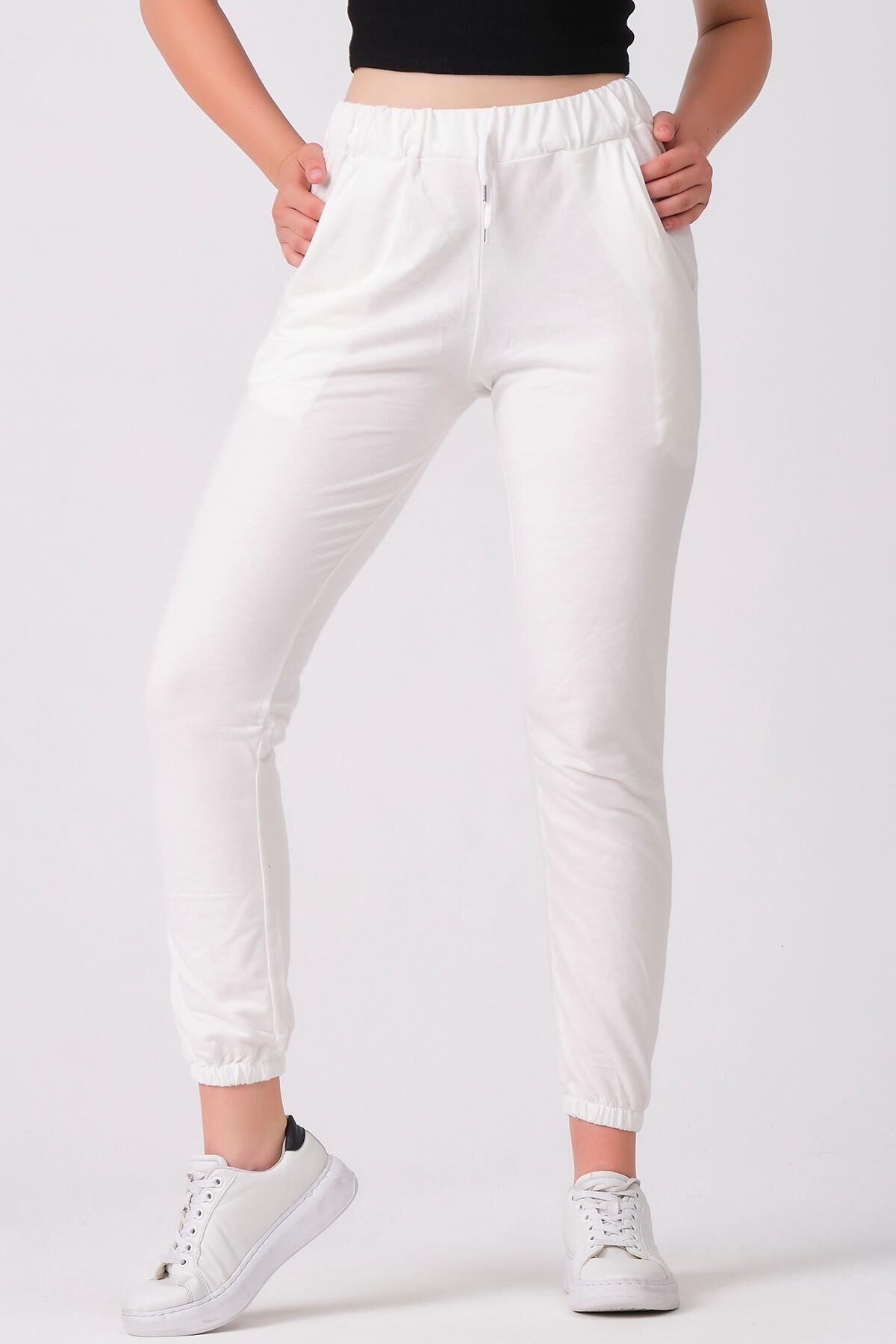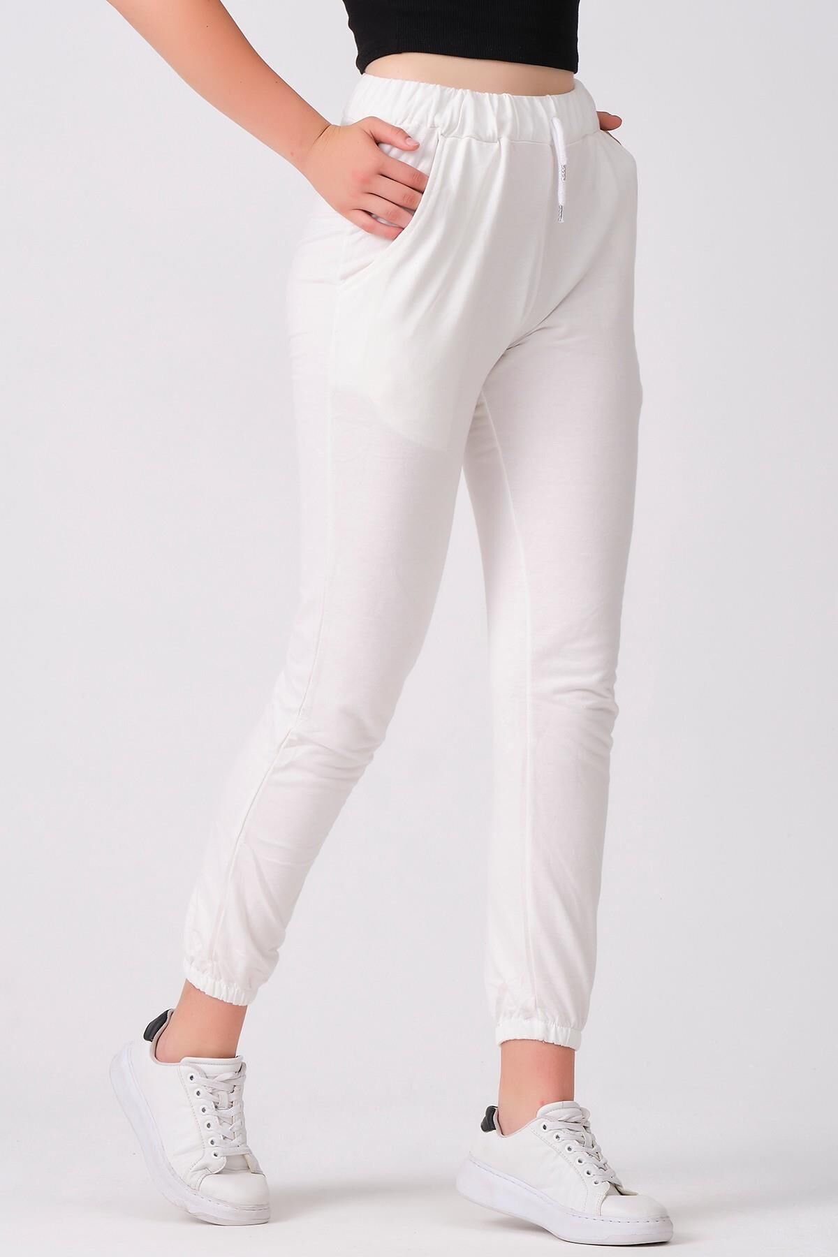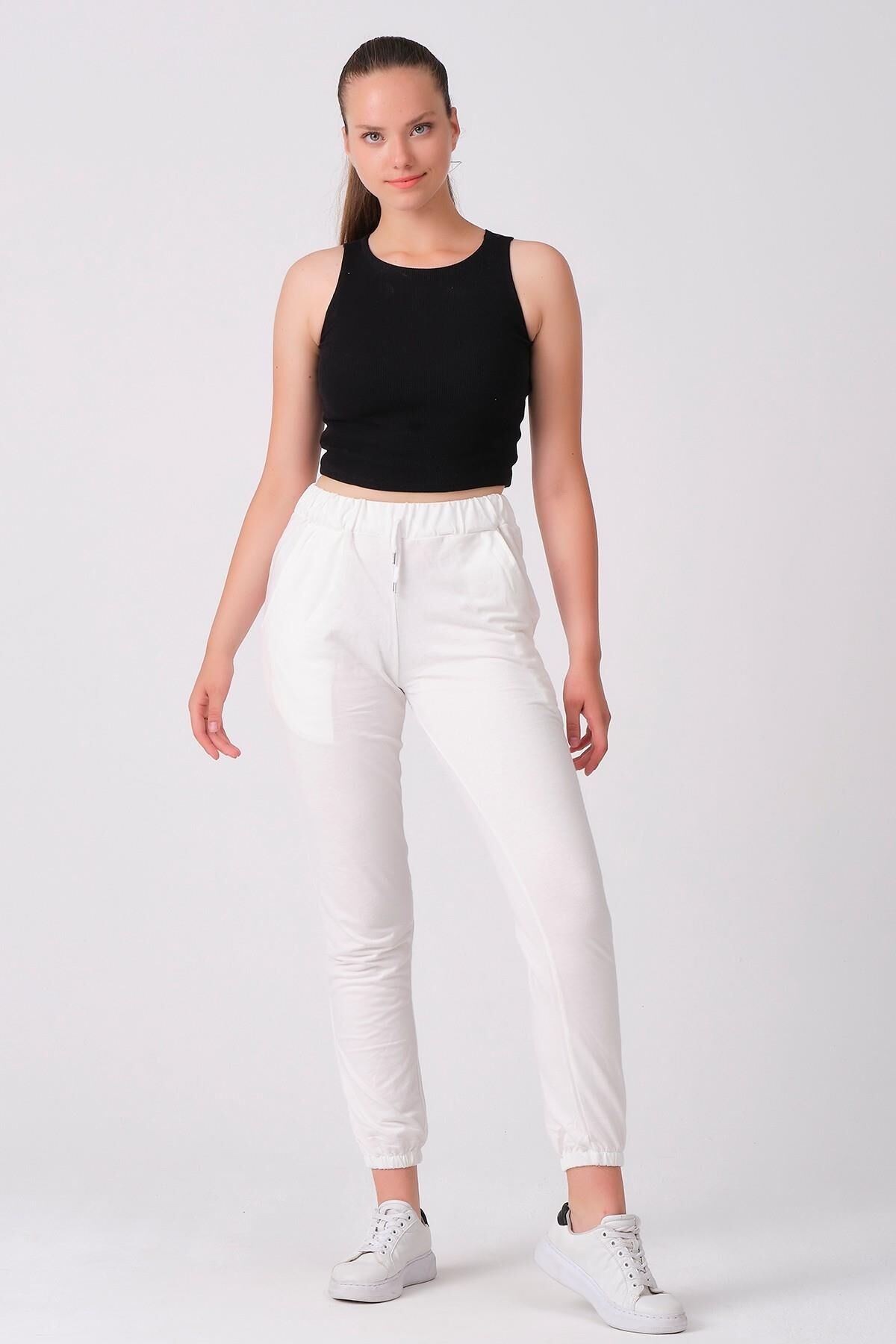 Şıklığı ve konforu bir arada sunan As Collection beyaz pamuklu beli lastikli kordonlu kadın eşofman altı ile tarzınızı tamamlayın.
