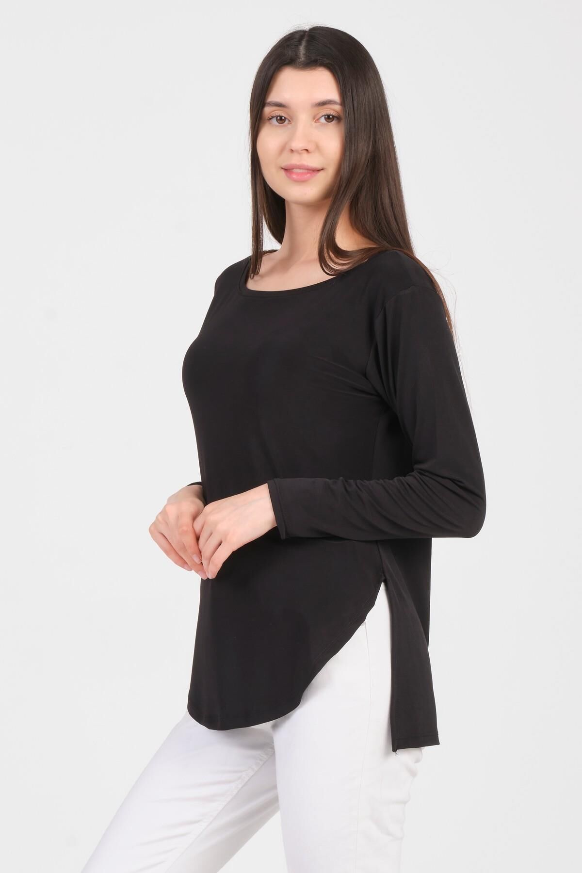 Kıyafet seçiminde şıklık ve konfor arasında tercih yapmak zorunda kalmak artık geçmişte kaldı! As Collection'dan yepyeni bir trend olan Siyah Uzun Kol Yırtmaçlı Sandy Kadın T-Shirt ile hem şık görünecek hem de gün boyu rahat edeceksiniz. Üstün kalitesi ve şık tasarımı ile her ortamda kendinizi özel hissedeceksiniz.