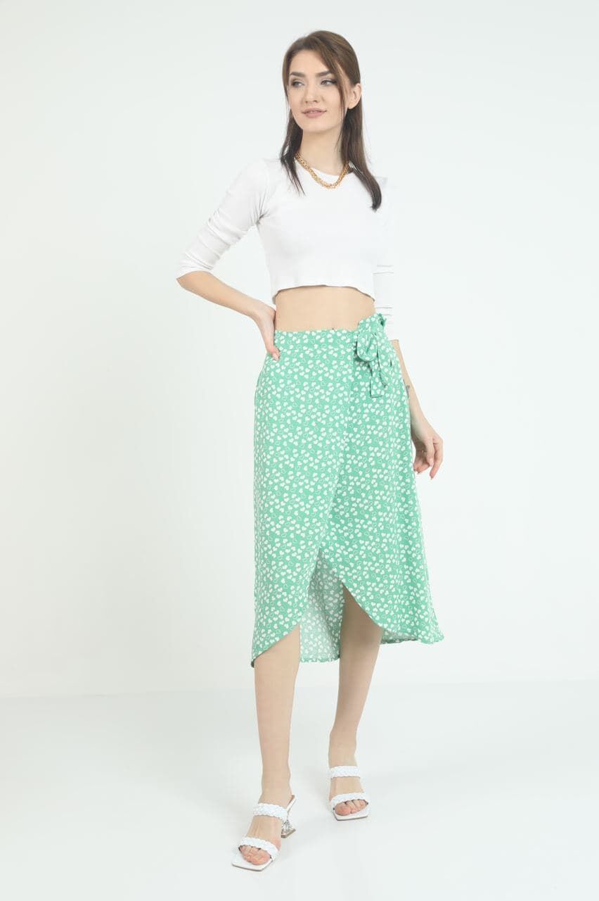 As Collection Yeşil Dokuma Kemer Bağlamalı Kadın Etek