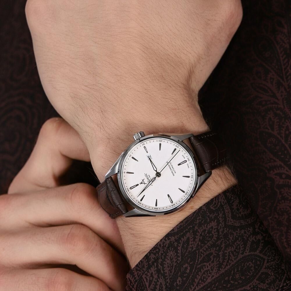 Kasa Çapı: 42 mm - Kasa Şekli: Yuvarlak - Kasa Materyali: Çelik - Kasa Rengi: Gümüş - Kordon Materyali: Deri - Kordon Rengi: Kahverengi- Kadran Rengi: Gümüş - Kadran Işığı: Yok - Taş: Yok - Çalışma Şekli: Analog - Teknolojisi: Otomatik - Takvim: Var - Kronometre: Yok - Alarm: Yok - Cam Özelliği: Safir - Özellik: Yaklaşık Güç Rezervi 38-40 Saat - Su Geçirmezlik: 5 ATM - Garanti Süresi: 2 YIL - Cinsiyet: Erkek