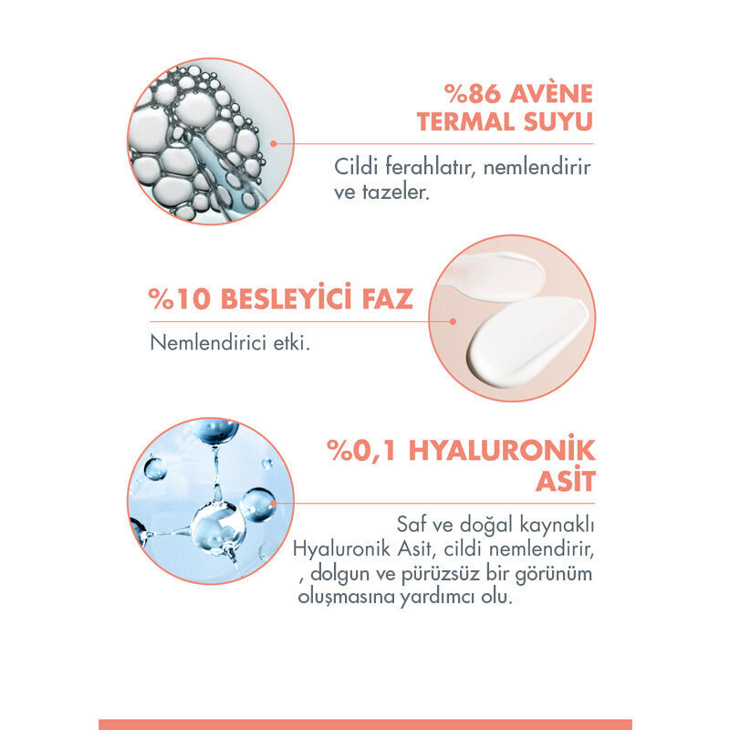 AVENE THERMAL SPRING WATER (AVENE AQUA). CAPRYLIC/CAPRIC TRIGLYCERIDE. GLYCERIN. BUTYROSPERMUM PARKII (SHEA) BUTTER (BUTYROSPERMUM PARKII BUTTER). CETEARYL ALCOHOL. CETEARYL GLUCOSIDE. CITRUS LIMON (LEMON) PEEL POWDER (CITRUS LIMON PEEL POWDER). DIUTAN GUM. SCLEROTIUM GUM. SODIUM HYALURONATE.