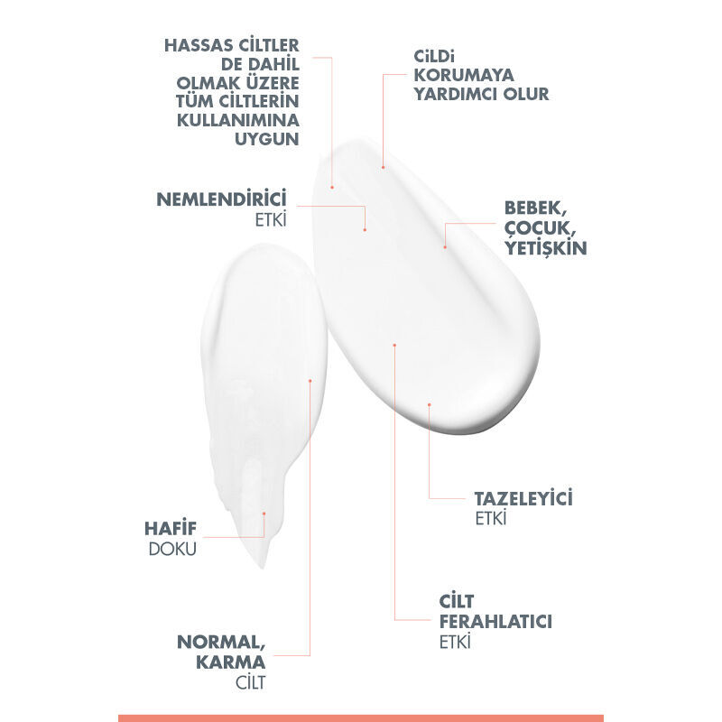 • Normal ve karma ciltler için doğal içeriklerden oluşan bu yüksek toleranslı nemlendirici yetişkinler, çocuklar ve bebekler için uygundur.