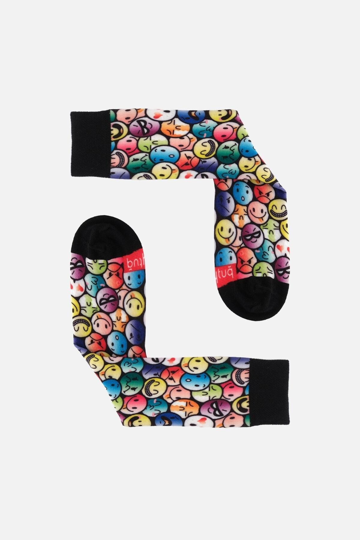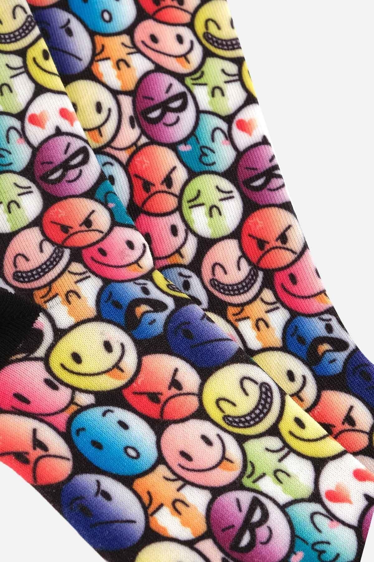 Aytuğ Unisex Pamuklu Emoji Desenli Eğlenceli Soket Çorabı Emoji Desenli