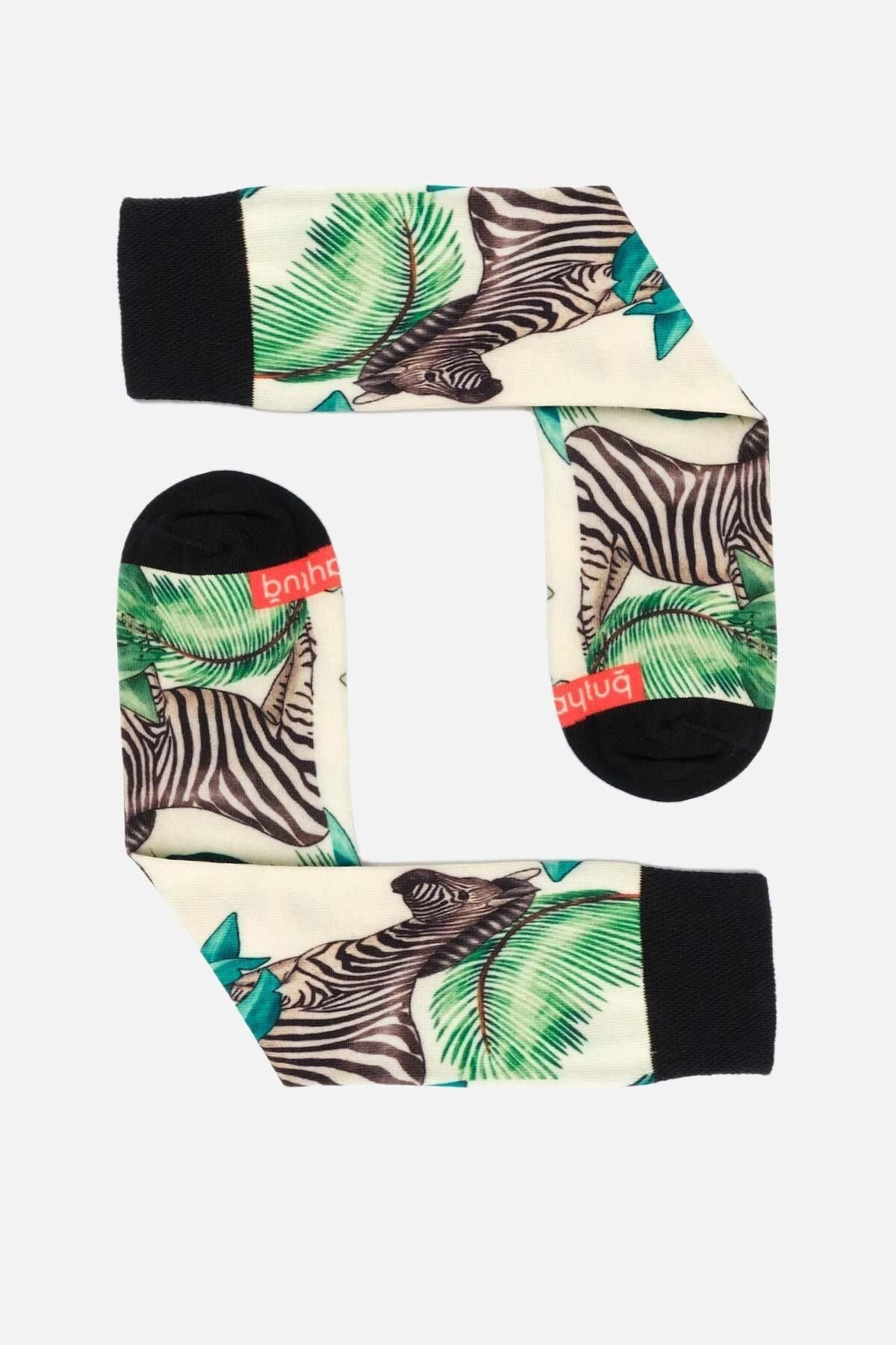 Aytuğ Unisex Pamuklu Zebra Desenli Eğlenceli Soket Çorabı Zebra Desenli
