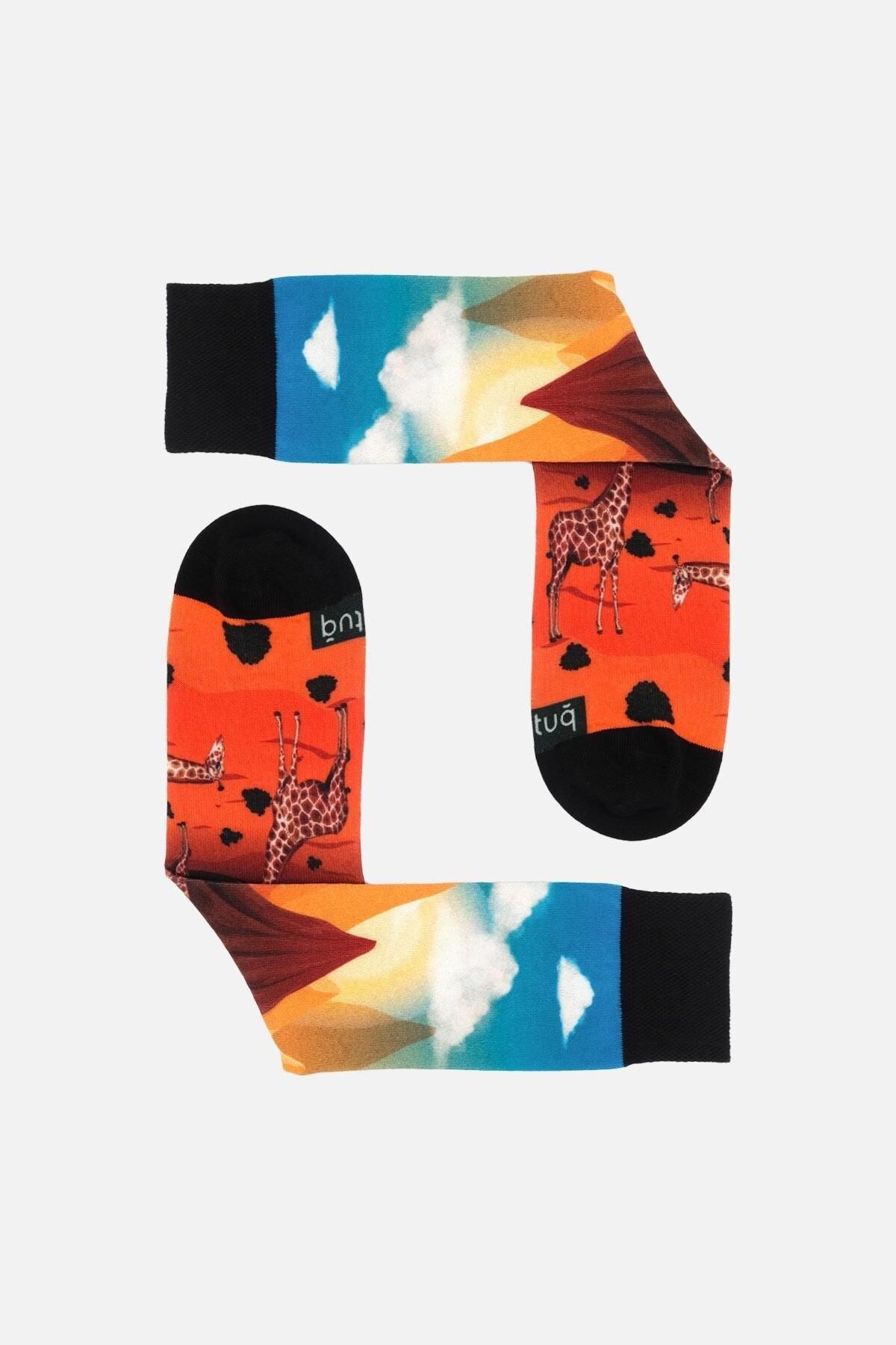 Aytuğ Unisex Pamuklu Zürafa Desenli Eğlenceli Soket Çorabı Zürafa Desenli