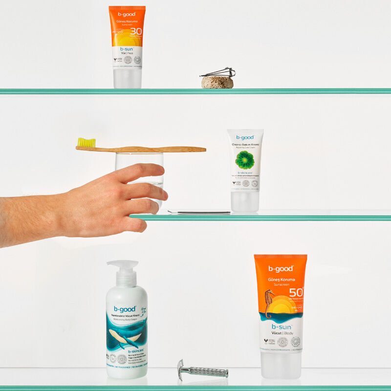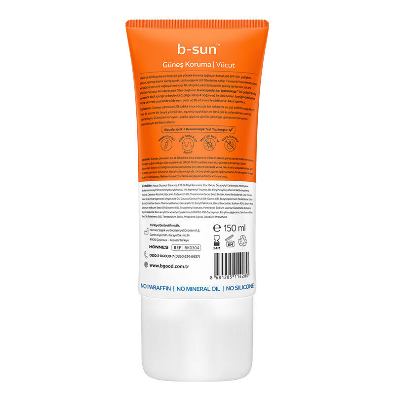 • b-good b-sunTM Güneş Koruma SPF 50 | Vücut, UVA ve UVB ışınlarını önleme yardımcı, geniş spektrumlu PA++++ yüksek koruma sağlayan fotostabil formüle sahiptir.