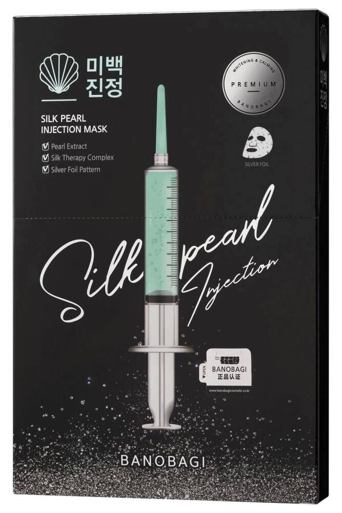 BANOBAGI İpek İnci Güçlendirici Maske 30g * 5 adet Açıklama Koyu ve donuk ciltler için özel bir tedavi maskesi olan Banobagi İpek İnci Enjeksiyon Maskesi.; Bu ipek terapi maskesi, cilt bariyerini güçlendirmek ve cilt rengini aydınlatmak için 10.000ppm mineral açısından zengin inci özü ve 17 amino asit kompleksi içerir.; Cildi aydınlatmak için antioksidanlarla dolu Glutatyon, cildi yatıştırmak ve nemlendirmek için Hidrolize ipek.; Saf pamuk aktif bileşenleri cildin derinliklerine nüfuz ettirdiği ve cildinize pürüzsüzce yapıştığı için yumuşak dokulu gümüş folyo levha.; Nasıl kullanılır Temizleme ve tonlamadan sonra, levhayı yüzünüze eşit şekilde uygulayın.; 10-20 dakika bekletin, levhayı çıkarın ve kalan özü emmesi için hafifçe vurun.; İçindekiler Aqua, Metilpropanediol, Niacinamid, Gliserin, Kaprilik/Kaprik Trigliserit, İnci Özü, 1,2-Heksandiol, Panthenol, Dimetikon, Hidroksiasetofenon, Polisorbat 60, Sorbitan Sesquioleat, Poliakrilat-13, Karbomer, Alantoin, Ksantan Sakızı, Arginin, Poliizobüten, Disodyum EDTA, Hidrolize İpek, Glisin, Glutamik asit, Serin, Aspartik asit, Lösin, Alanin, Lizin, Arginin, Tirozin, Fenilalanin, Treonin, Prolin, Valin, İzolösin, Histidin, Metiyonin, Sistein, Tokoferil Asetat, Polisorbat 20, Sorbitan izostearat, Glutatyon