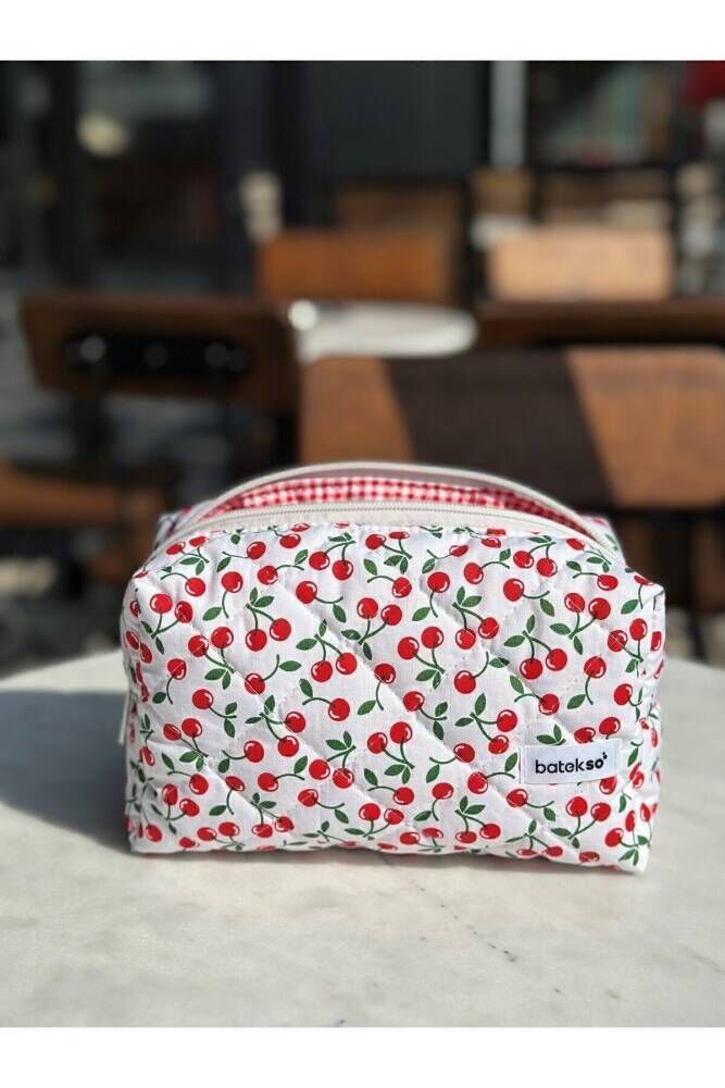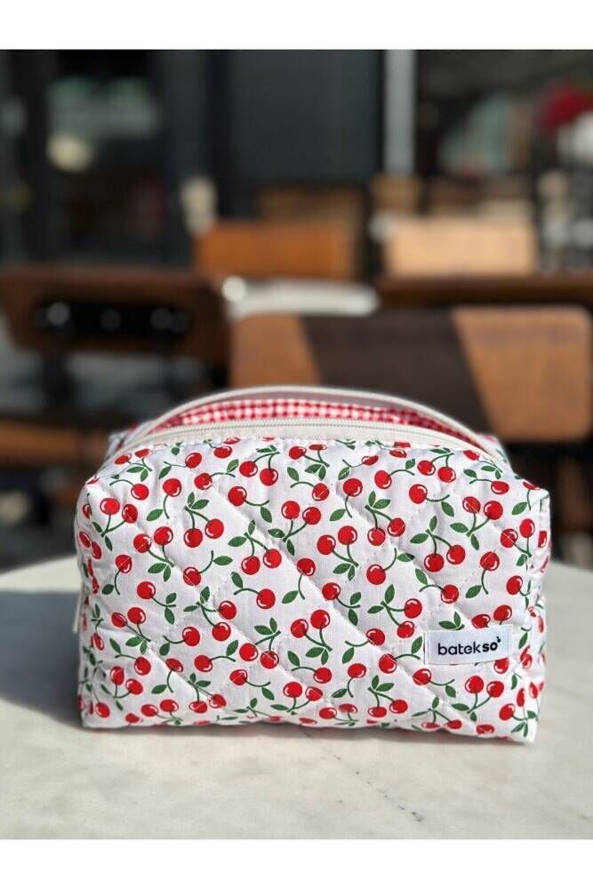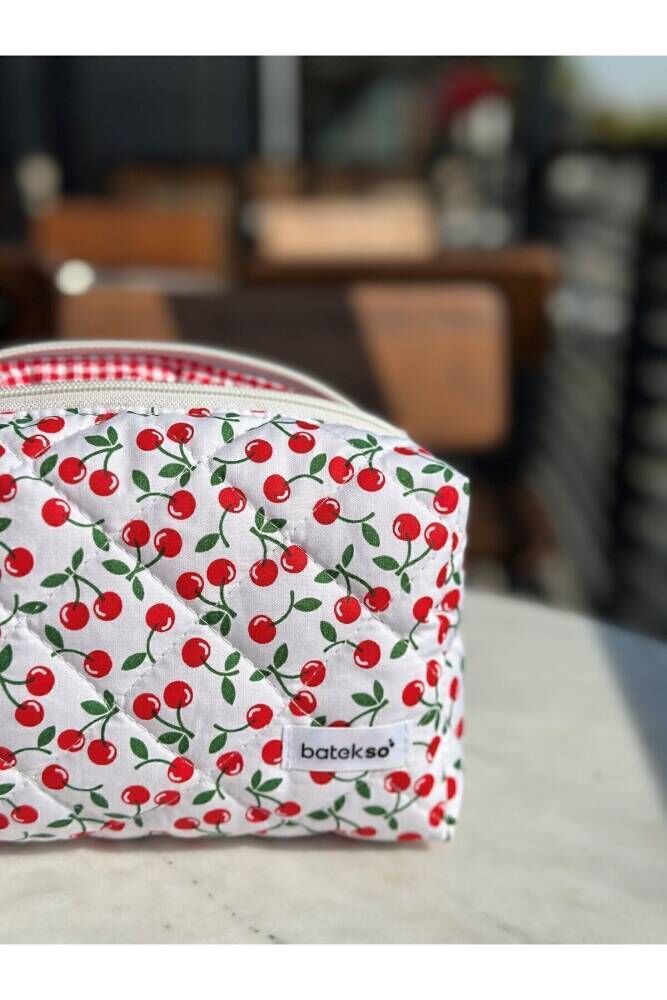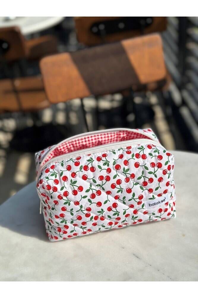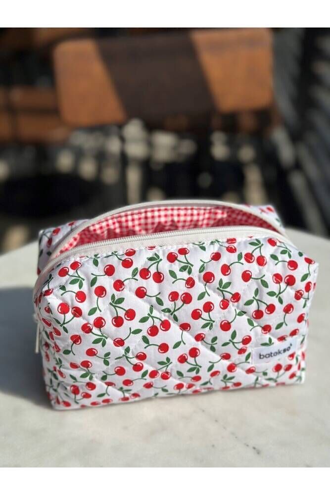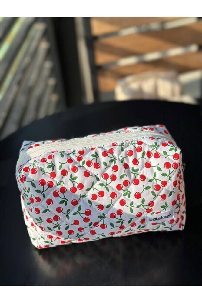 Mini Kiraz Desenli Makyaj Çantası - Büyük Boy