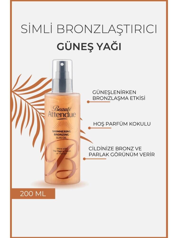 Güneşlenirken bronzlaşma etkisini artırmak isteyenler için özel formüle edilmiştir. Cildin doğal bronzlaşma sürecini desteklerken parlak bir ışıltı verir. Doğal bir bronzlaşma etkisi ve ışıltılı bir görünüm sağlar. İçeriğinde doğal yağlar sayesinde bronzlaşma sürecinde cildin kurumasını önleyerek daha uzun süreli ve sağlıklı bir bronzluk elde etmenize yardımcı olur. Işıltılı bronzlaştırıcı Güneş Yağı, hafif ve kolay emilen formülü ile öne çıkar. Cildinizi nemlendirirken aynı zamanda bronzlaşma etkisini artırarak, güneşlenirken cildinize sağlıklı bir parlaklık kazandırır.