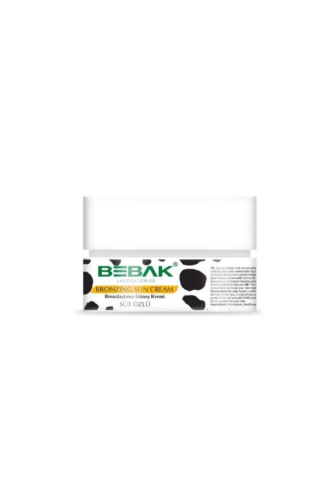 BEBAK SÜT ÖZLÜ BRONZLAŞTIRICI KREM 100ml İçeriğindeki havuç ve kakao yağı özleri ile etkili ve hızlı bronzlaşma sağlarken, formülündeki süt özleri sayesinde ekstra nem sağlayarak cildinize bakım yapmanıza yardımcı olur. ; • Etkili bronzlaştırıcı formülü ile güneşte kalma sürenizi kısaltarak gereksiz UV ışınına maruz kalmaktan korur. ; BEBAK Süt Özlü Bronzlaştırıcı Krem Nasıl Kullanılır? Güneşe çıkmadan önce yüz ve vücut bölgesine bolca ve eşit bir şekilde uygulanmalıdır. ; Etkin koruma için 2 saatte 1 tekrarlanması tavsiye edilir. ; Ürünün cilt yüzeyinde kalmasını engelleyen aktivitelerden sonra özellikle de yüzmeden sonra tekrar uygulanmalıdır. ; Kullanmadan önce çalkalanması önerilir. ; Cilt leke riskini azaltmak için günlük kullanım önerilir.;