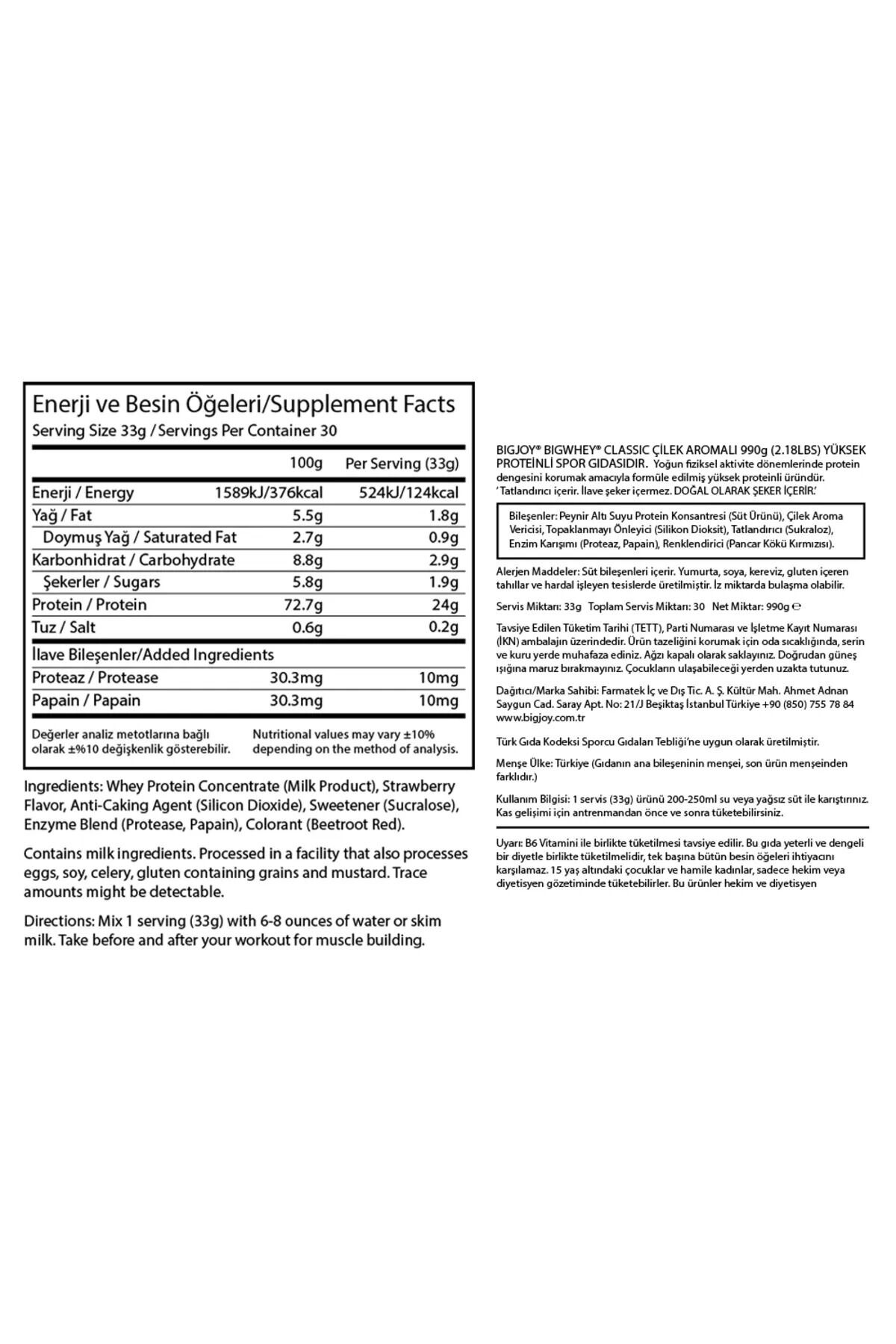 Big Whey Classic Whey Protein Tozu 915 gr Çilek Aromalı