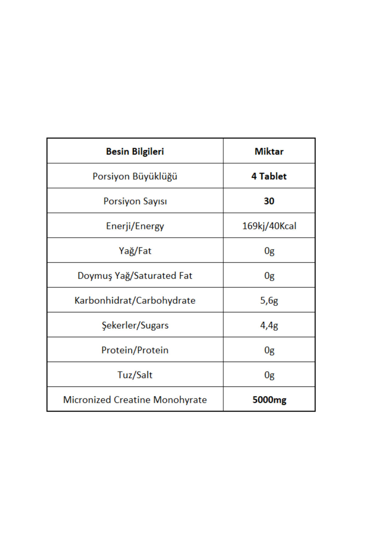 - Çiğnenebilir formda tasarlanmış, pratik kullanım sunar ve kolayca tüketilebilir.; - Vişne aroması ile zenginleştirilmiş, lezzetli bir deneyim sağlar ve antrenman öncesi motivasyonu artırır.; - Kreatin monohidrat içeriği sayesinde kas gücünü ve performansını destekler, yoğun antrenmanlar için idealdir.; - 120 adet tablet içeren paketiyle uzun süreli kullanım imkanı sunar ve 30 servislik porsiyonlarla dengeli bir takviye rejimi oluşturmanıza olanak tanır.