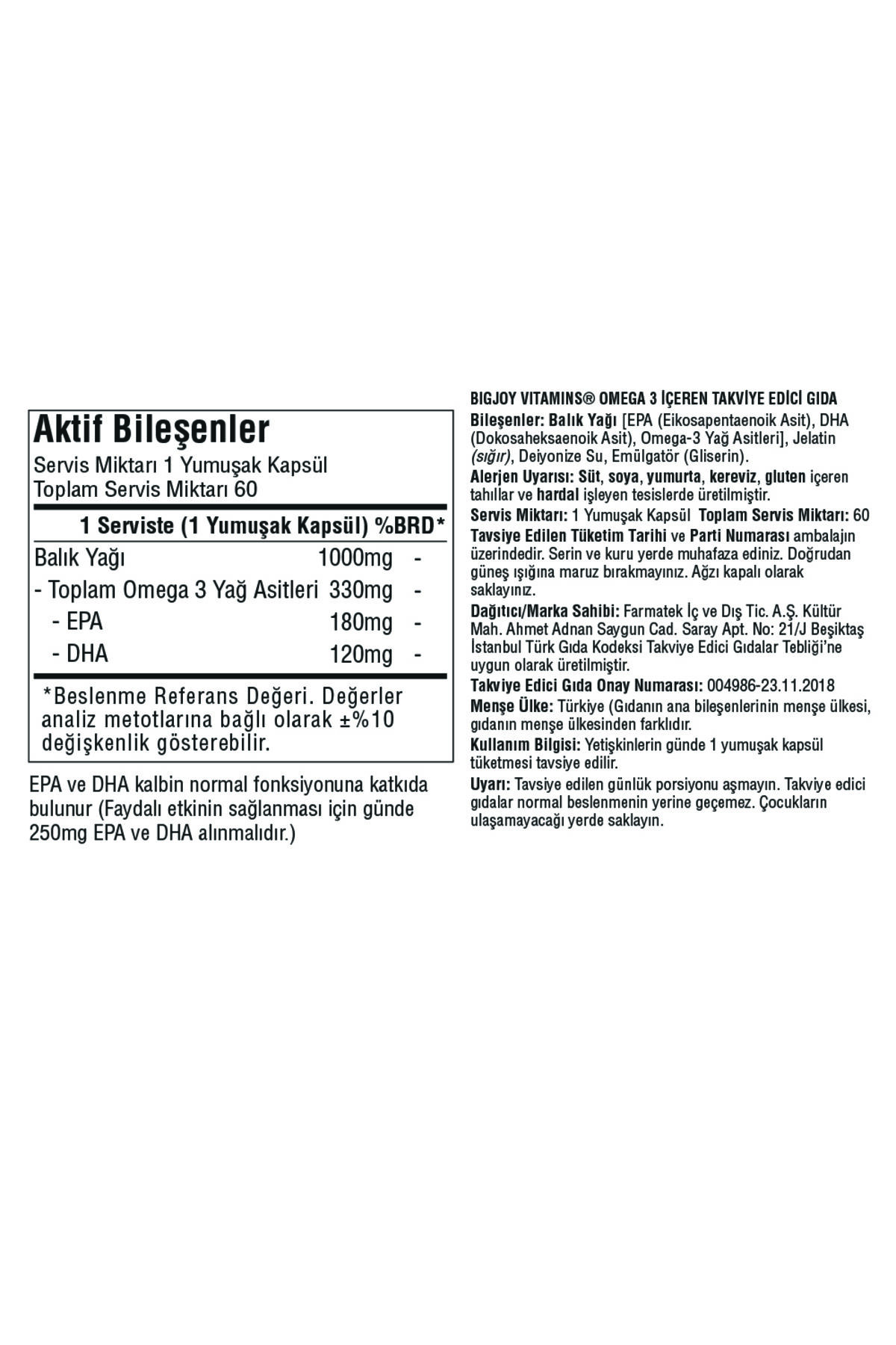 Bigjoy Vitamins Balık Yağı Omega 3 1000 Mg 60 Yumuşak Kapsül