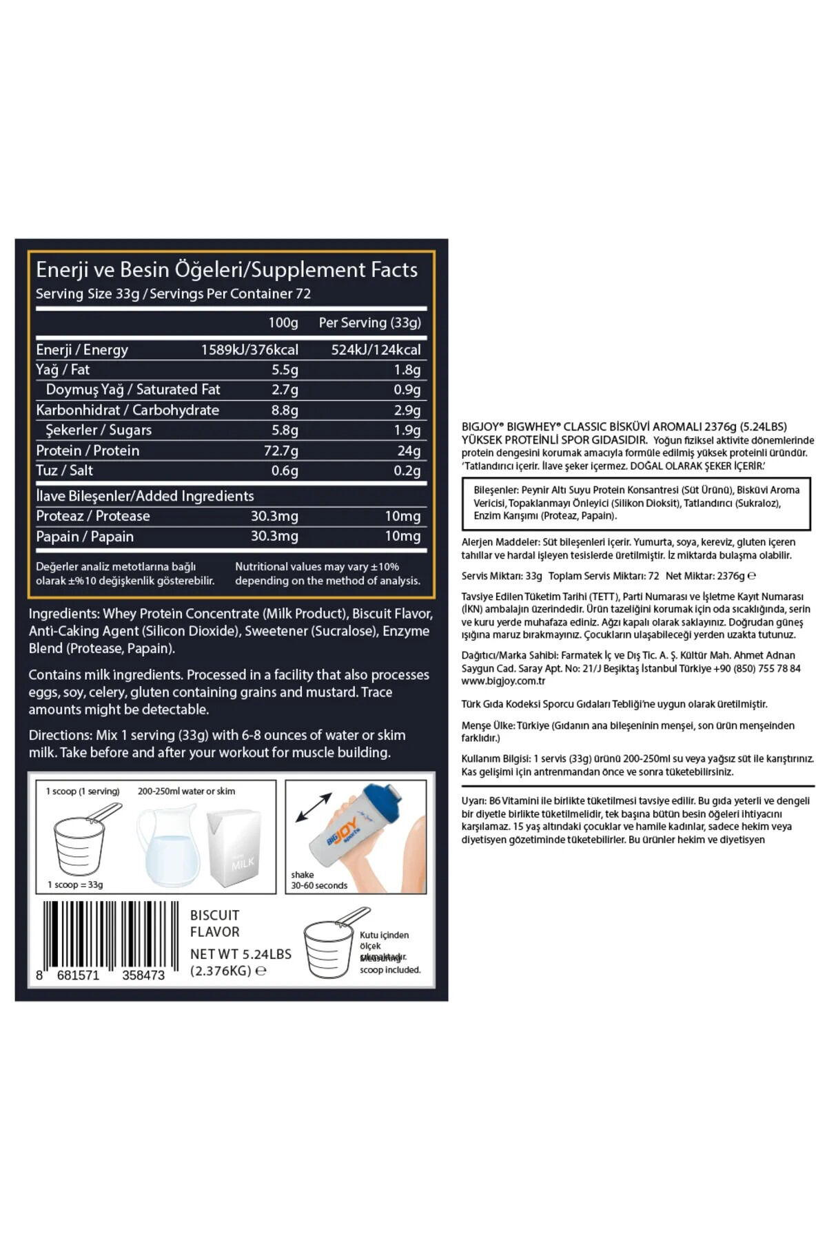 Bigjoy Bigwhey Classic Whey Protein Tozu Bisguit 2376G Bisküvi Protein Powder Wıth Enzım Blend