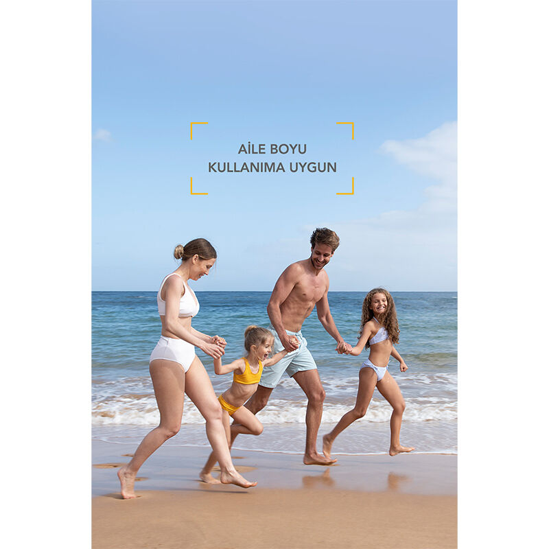 Hassas ve toleransı en düşük ciltler dahil olmak üzere tüm cilt tiplerine uygun çok yüksek koruma sağlayan güneş koruyucu