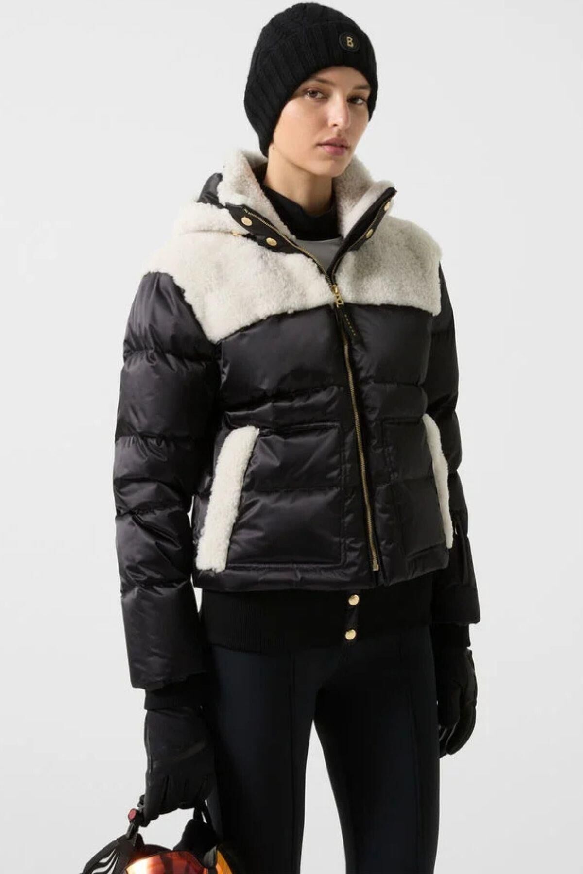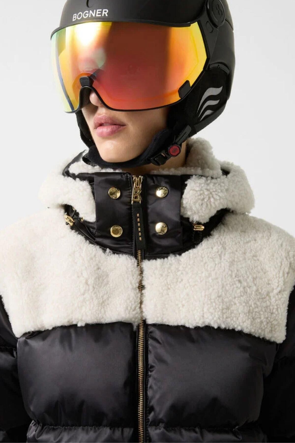 Su tutmayan, su geçirmez ve nefes alabilen saten kumaştan üretilen ve kuzu derisi bölümlerle şık bir şekilde tamamlanan Dia kaz tüyü kayak ceketi, yamaçlar için öne çıkan bir parça olarak göz kamaştırıyor. Hafif kaz tüyü ve kaz tüyü dolgusu onu harika bir şekilde sıcak tutar. İmza tasarımındaki metalik detaylar özel bir görünüm kazandırır.