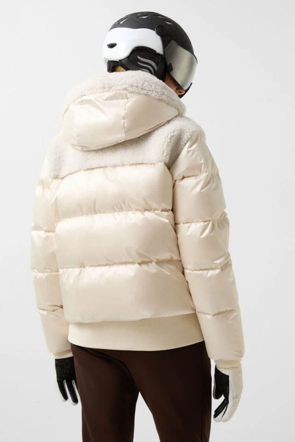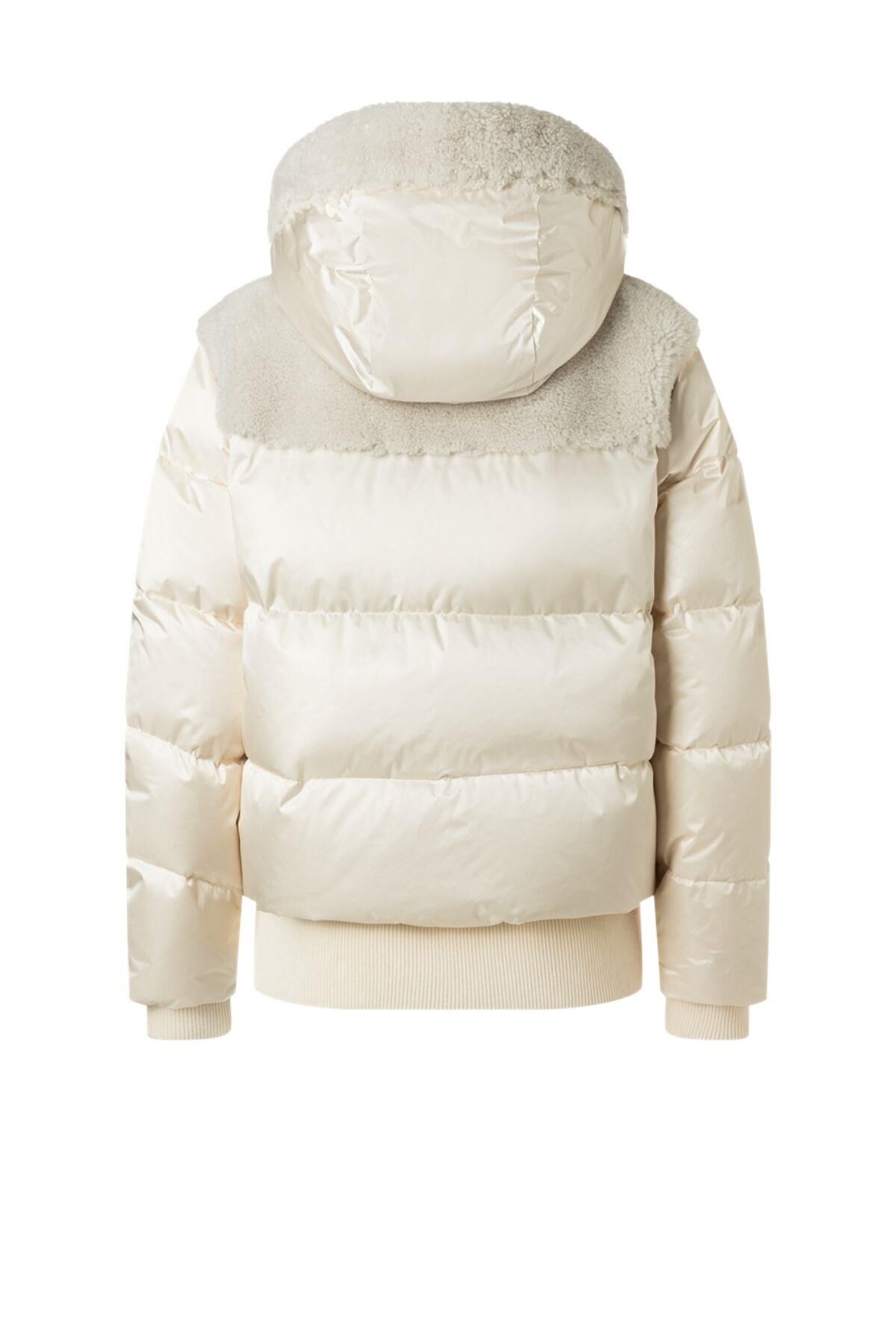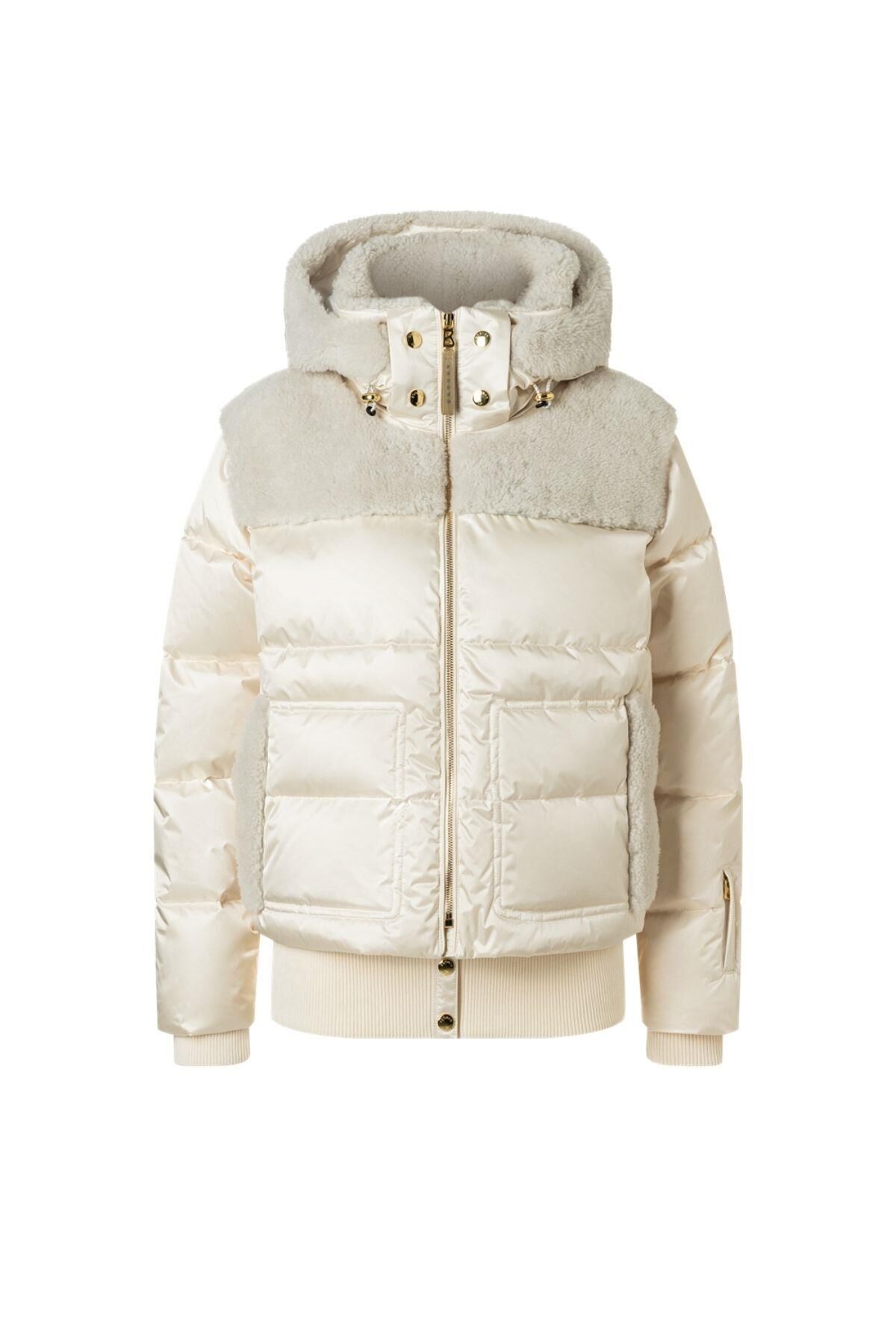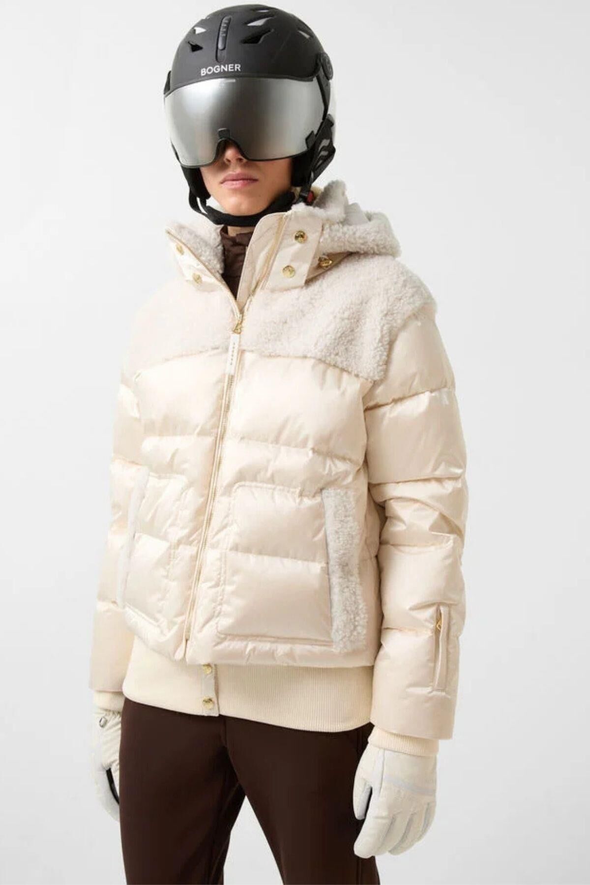 Su tutmayan, su geçirmez ve nefes alabilen saten kumaştan üretilen ve kuzu derisi bölümlerle şık bir şekilde tamamlanan Dia kaz tüyü kayak ceketi, yamaçlar için öne çıkan bir parça olarak göz kamaştırıyor. Hafif kaz tüyü ve kaz tüyü dolgusu onu harika bir şekilde sıcak tutar. İmza tasarımındaki metalik detaylar özel bir görünüm kazandırır.