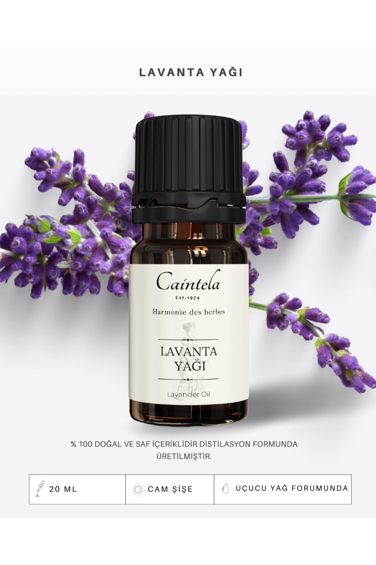caintela Lavanta Yağı 20 ml - Cilt besleyici ve nemlendirmeye yardımcı %100 Doğal ve Saf
