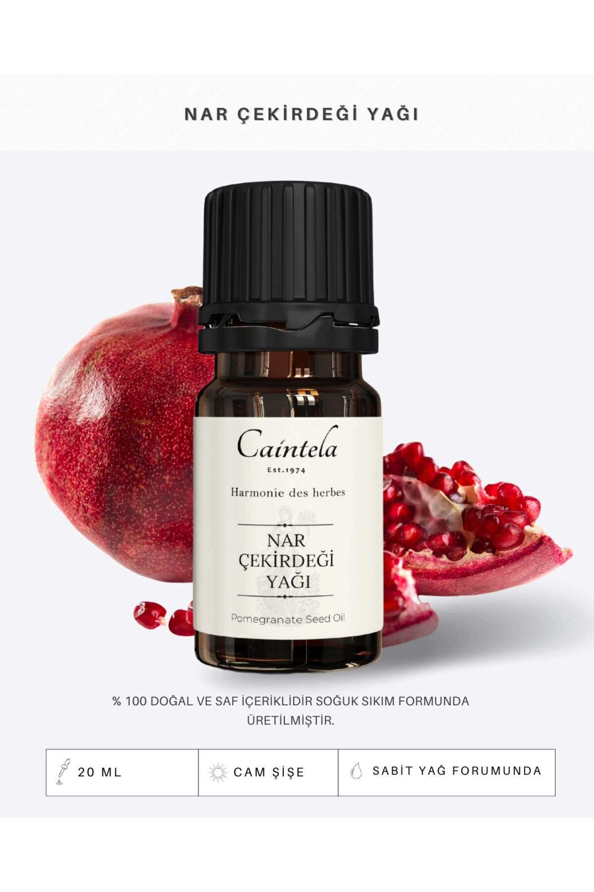 caintela Nar Çekirdeği Yağı 20 ml - Antioksidan Anti Aging Yaşlanma Karşıtı %100 Doğal ve Saf