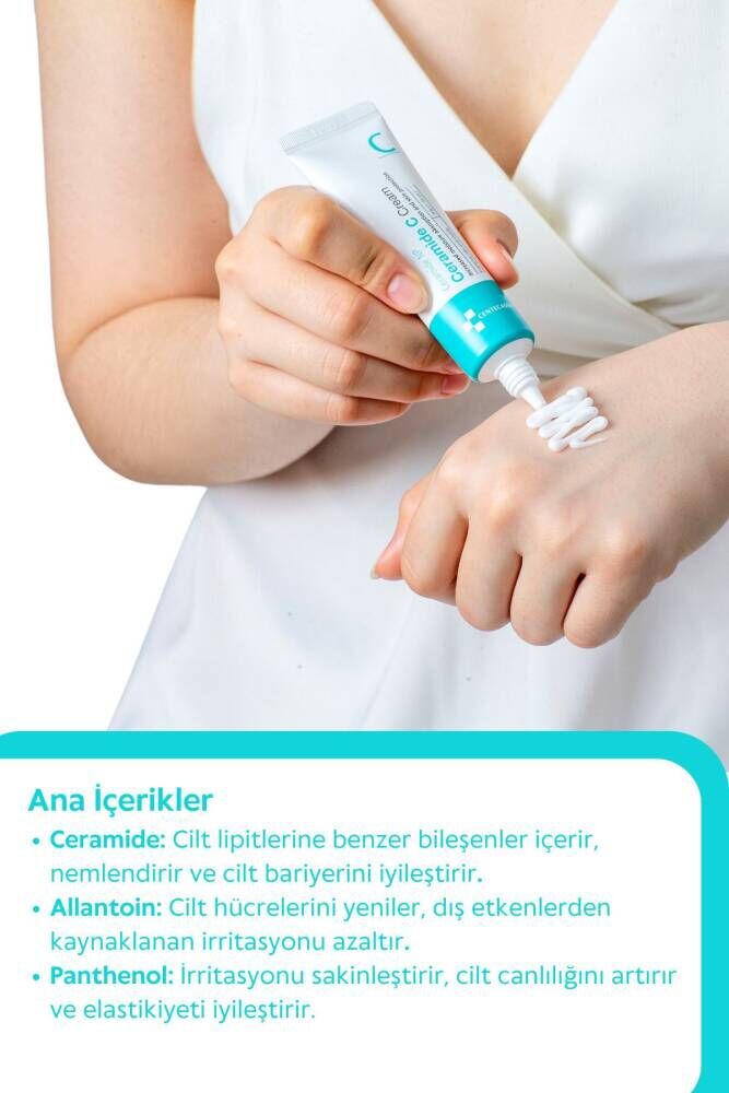 CENTECASSOL SERAMİD KREM 30 ML NEDİR? NE İŞE YARAR? Seramidler cilt hücrelerinde bulunan yağlar veya lipitlerdir.; Dış cilt katmanınızın veya epiderminizin %30 ila %40'ını oluştururlar.; ; Seramidler cildinizin nemini korumak ve mikropların vücudunuza girmesini önlemek için önemlidir.; ; Cildinizin seramid içeriği azalırsa (ki bu genellikle yaşla birlikte olur), susuz kalabilir.; Kuruluk ve tahriş gibi cilt sorunları gelişebilir.; ; Seramidler , vücudunuzun dış kirlilik ve toksinlere karşı ilk savunma hattı olarak hizmet veren cildinizin bariyer fonksiyonunda rol oynar.; Ayrıca beyin gelişimini destekler ve hücre fonksiyonunu korurlar.; ; Seramid nemlendiriciler, ciltteki seramid seviyelerini iyileştirerek cildinizin sağlıklı kalmasına yardımcı olur.; ; Seramidler vücudumuzda doğal olarak bulunan, cilt bariyerinin bütünlüğünü korumaya ve ciltteki nemi tutmaya yardımcı olan çok önemli lipitlerdir.; Bu yüzden Centecassol ceramide krem kuru, kaşıntılı cilde sahip insanlar için güçlü bir bileşendir.; Özellikle egzeması veya klinik olarak kuru cildi olan kişilerde seramid bileşeni ciltte çok daha azdır.; ; Bu yüzden Centecaasol Seramid içeren nemlendiriciyi sürmek, cildin dış katmanını onarmaya büyük ölçüde yardımcı olur.; ; Nasıl Kulllanılır? Temiz bir cilde rutininin son aşamasında nohut tanesi kadar seramidli nemlendiriciyi alıp tüm yüze uygulayın.; ; Her gün kullanılabilir.; ; Göz ile temasından kaçının.; ; Kullanım Talimatı: Herhangi bir anormal semptom veya kırmızı lekeler, şişlik gibi yan etkiler varsa bir uzmana danışın.; Çocukların erişemeyeceği, güneş ışığından uzak serin ve kuru yerde muhafaza ediniz.; Gözle temasından sakınınız.; Gözle teması halinde bol su ile yıkayınız.; Kullanım amacı dışında hiçbir maksatla kullanmayınız.; Skt: 14.12.2026
