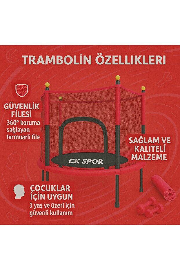 CKSPOR Fileli Büyük Boy Trambolin 140 cm, çocukların güvenli ve keyifli şekilde hareket etmelerini sağlamak amacıyla tasarlanmıştır. Geniş zıplama alanı ve korumalı file sistemi sayesinde evde veya bahçede güvenli kullanım sunar. Sağlam yapısı ile hafif egzersizler ve eğlenceli aktiviteler için idealdir.