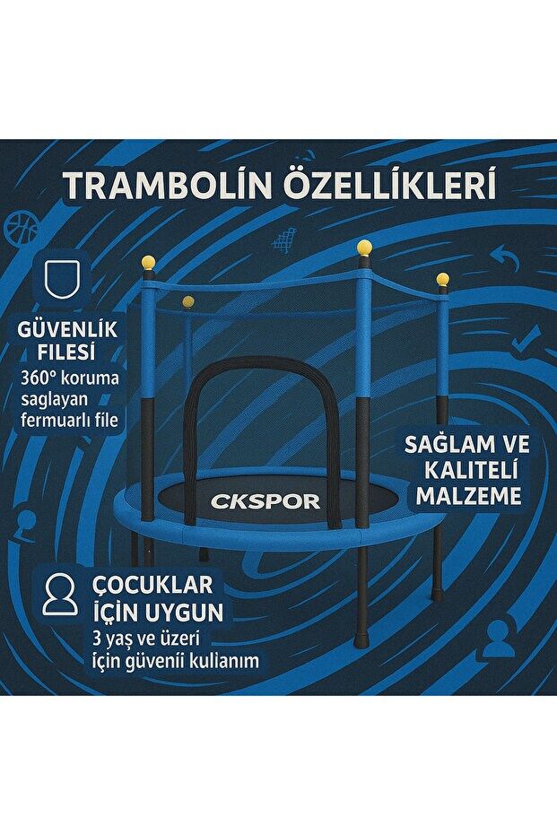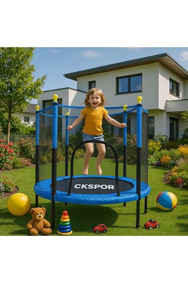 CKSPOR Fileli Büyük Boy Trambolin 140 cm Mavi – Korumalı Kolay Kurulum Ev ve Bahçe Trambolini