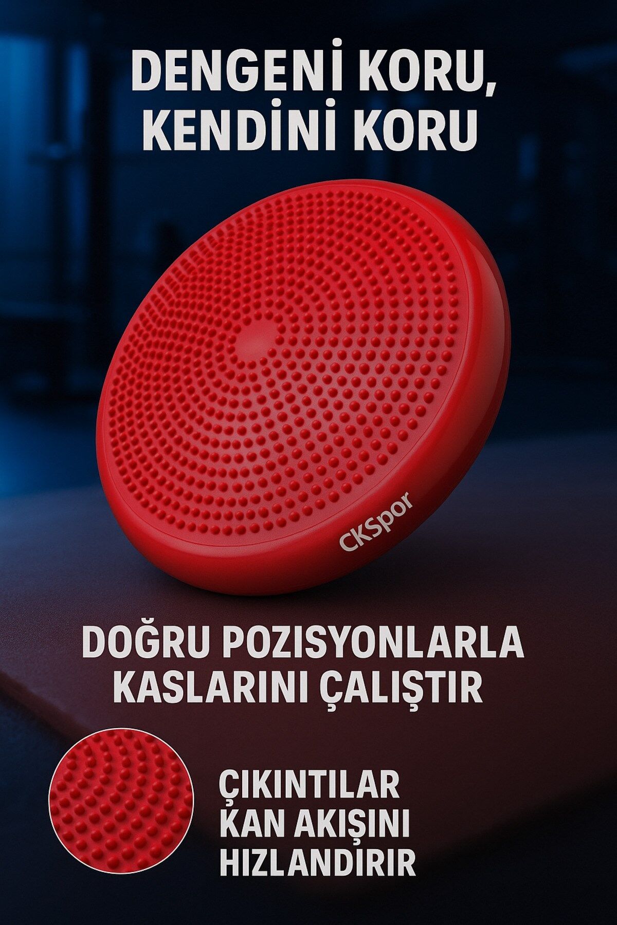 Dayanıklı PVC malzemeden üretilmiş olan CKSPOR denge diski, evde ve spor salonunda kullanım için uygundur. Hafif ve taşınabilir yapısı ile her ortamda rahatlıkla kullanılabilir.