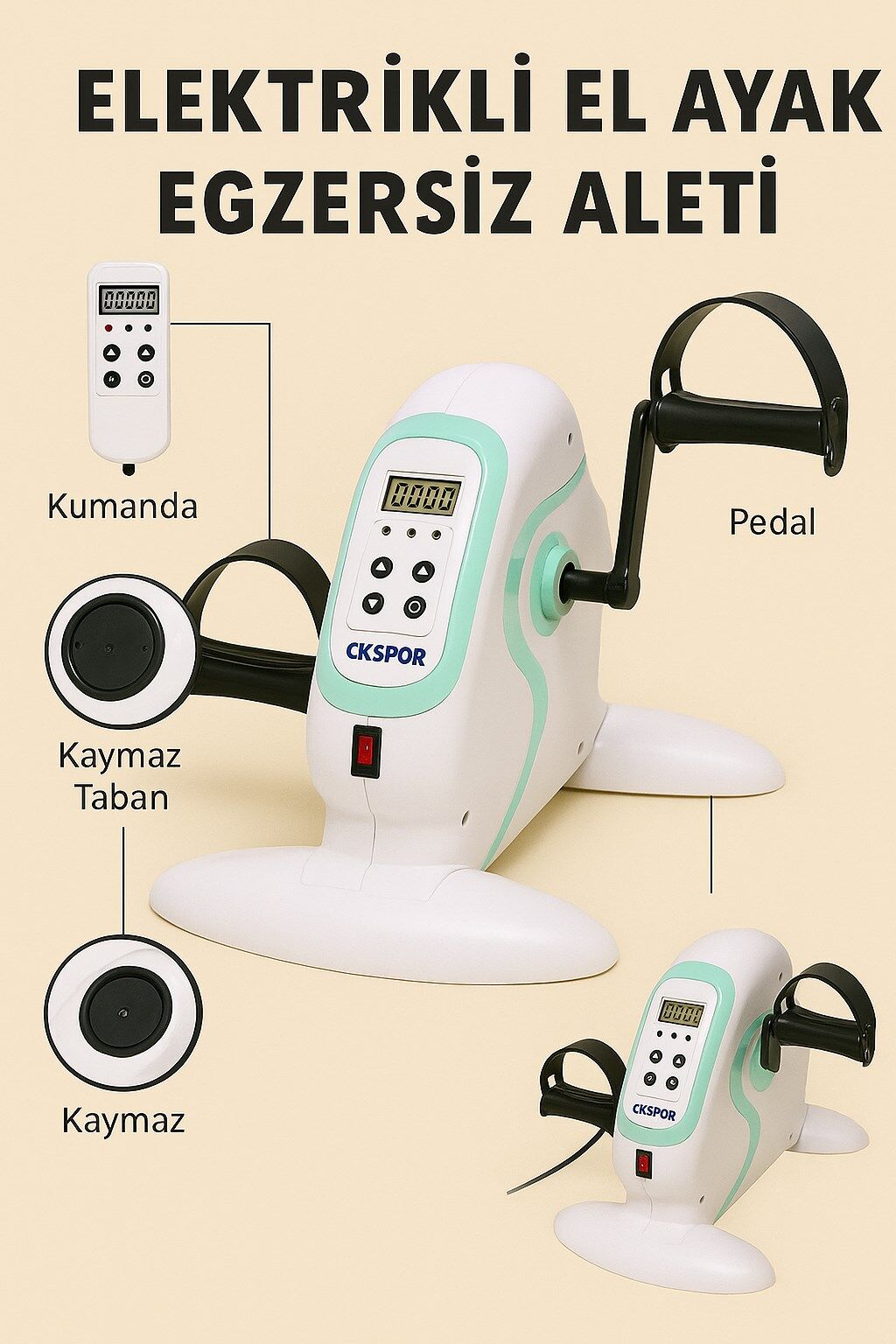 CKSPOR Elektrikli Mini Egzersiz Bisikleti, aktif ve pasif egzersiz imkânı sunarak rehabilitasyon, fizyoterapi ve günlük hareket ihtiyacını desteklemek üzere tasarlanmıştır. Spor ve fitness salonlarında, fizik tedavi merkezlerinde ve ev kullanımında güvenle tercih edilebilir. Elektrikli yapısı sayesinde kontrollü ve düzenli hareket imkânı sunar.