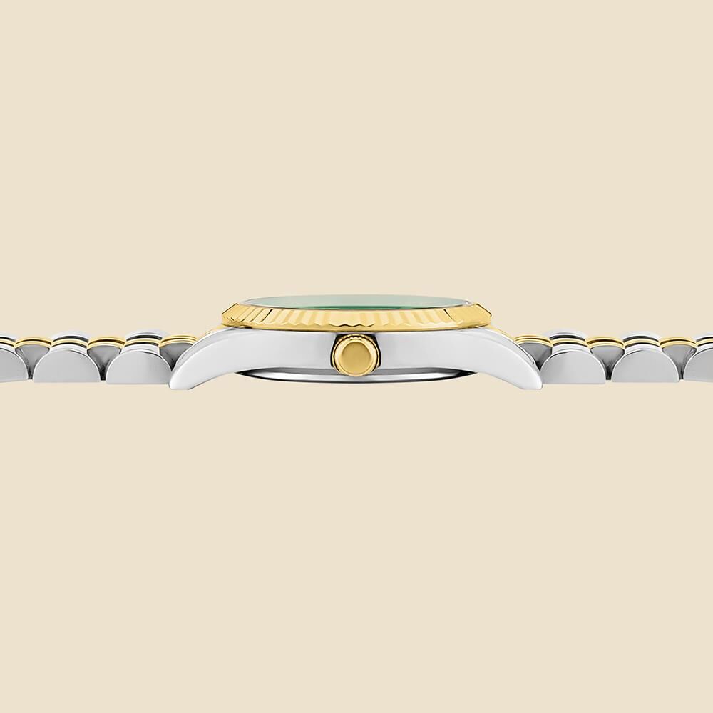 Kasa Çapı: 26x33 mm - Kasa Şekli: Yuvarlak - Kasa Materyali: Çelik - Kasa Rengi: Altın - Kordon Materyali: Çelik - Kordon Rengi: Altın/Gümüş- Kadran Rengi: Yeşil - Kadran Işığı: Yok - Taş: Yok - Çalışma Şekli: Analog - Teknolojisi: Quartz - Takvim: Yok - Kronometre: Yok - Alarm: Yok - Cam Özelliği: Mineral - Özellik: - Su Geçirmezlik: 5 ATM - Garanti Süresi: 2 Yıl - Cinsiyet: Kadın